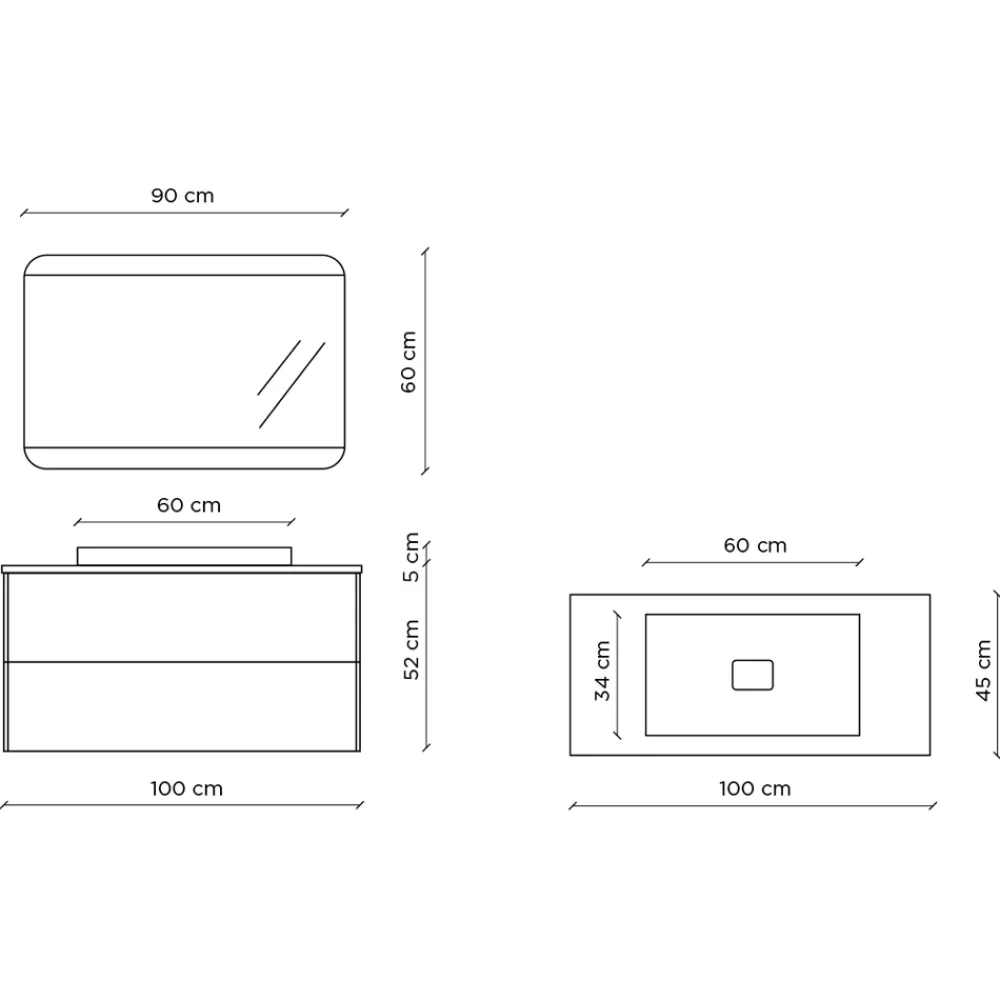Basis: L 100 cm x T 45 cm x H 52 cm