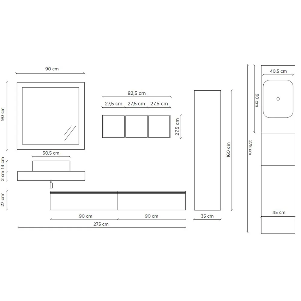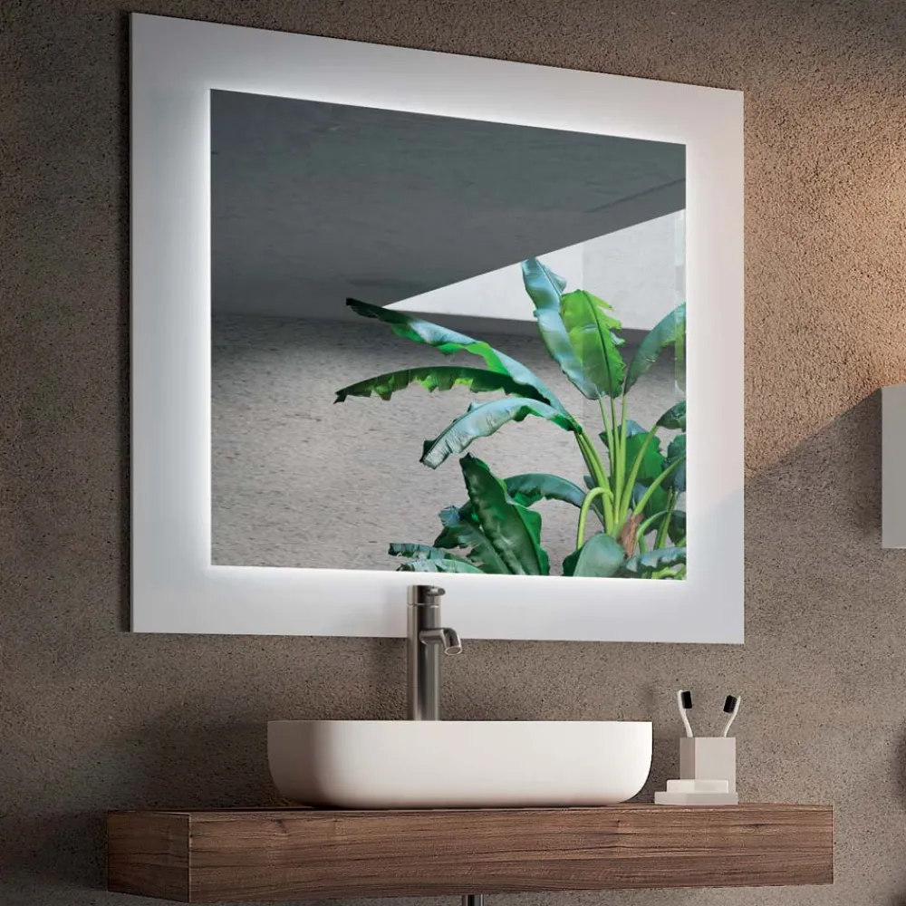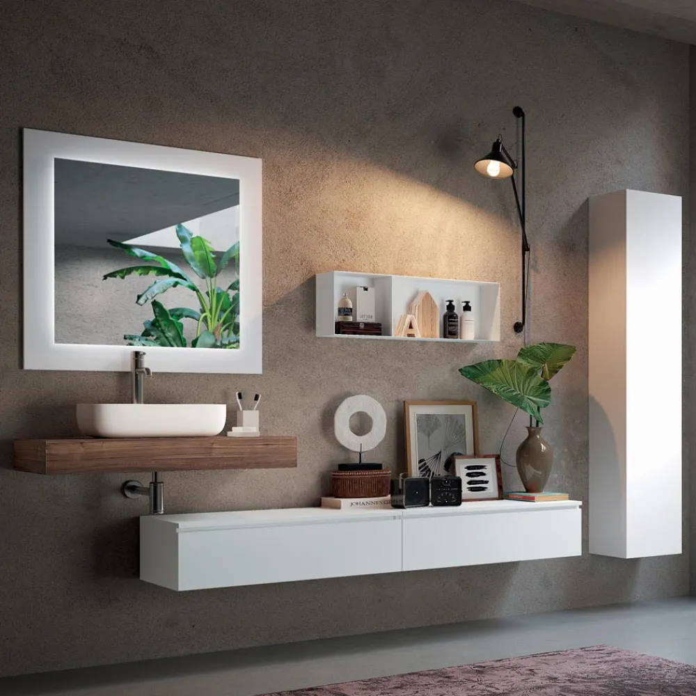 Badezimmerkomposition komplett mit Spiegel, kratzfestem Sockel und Waschbecken „Made in Italy“