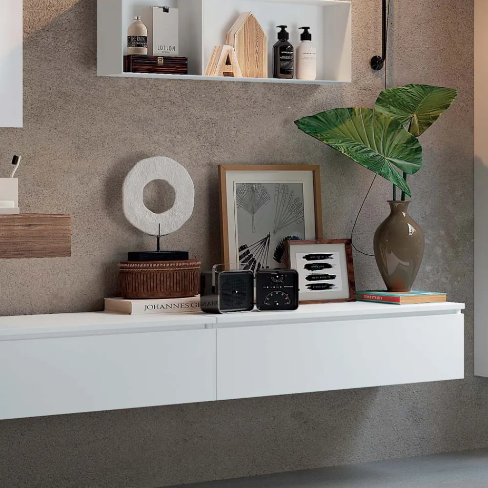 Die Kombination aus Materialien und Farben macht dieses Produkt einzigartig und verleiht dem Badezimmer eine einzigartige und elegante Note. Es ist die Antwort für alle, die ihr Badezimmer mit Geschmack und Stil einrichten möchten, ohne auf die Funktionalität und Zweckmäßigkeit zu verzichten, die es auszeichnen.