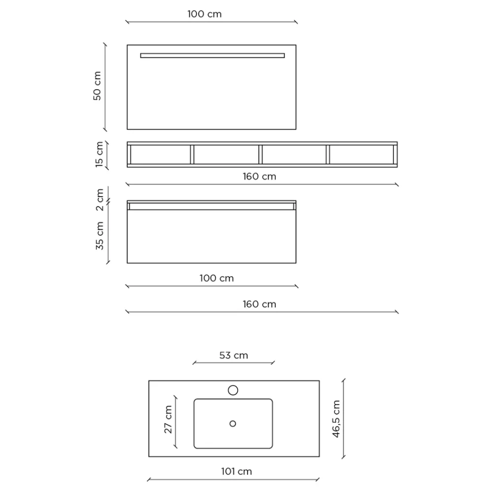 Basis: L 100 cm x T 46,5 cm x H 37 cm