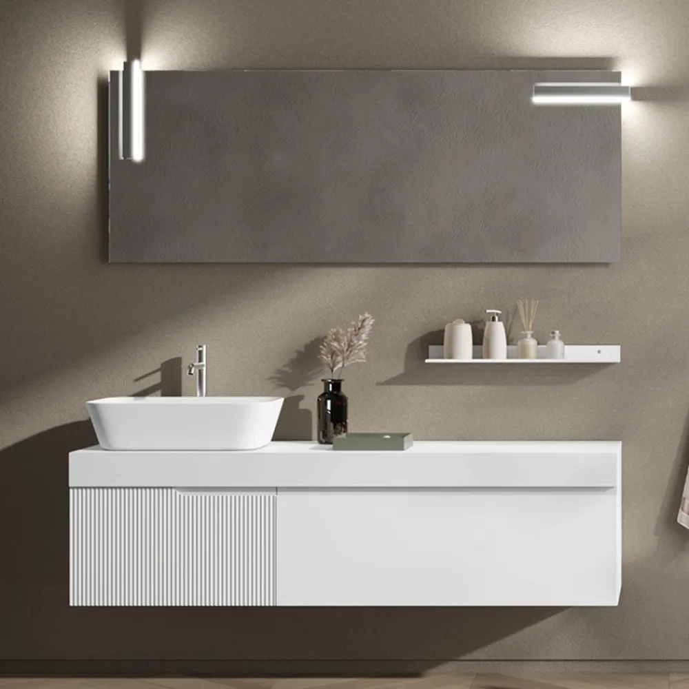 Badezimmerkomposition aus weiß geripptem MDF Made in Italy