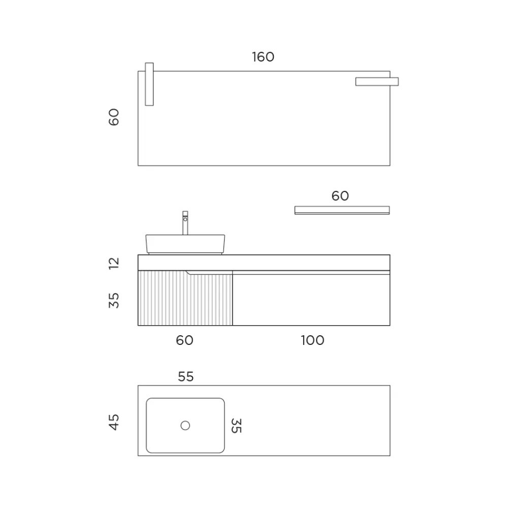 - Ablage: Länge 60 x Tiefe 10 cm x Höhe 5 cm