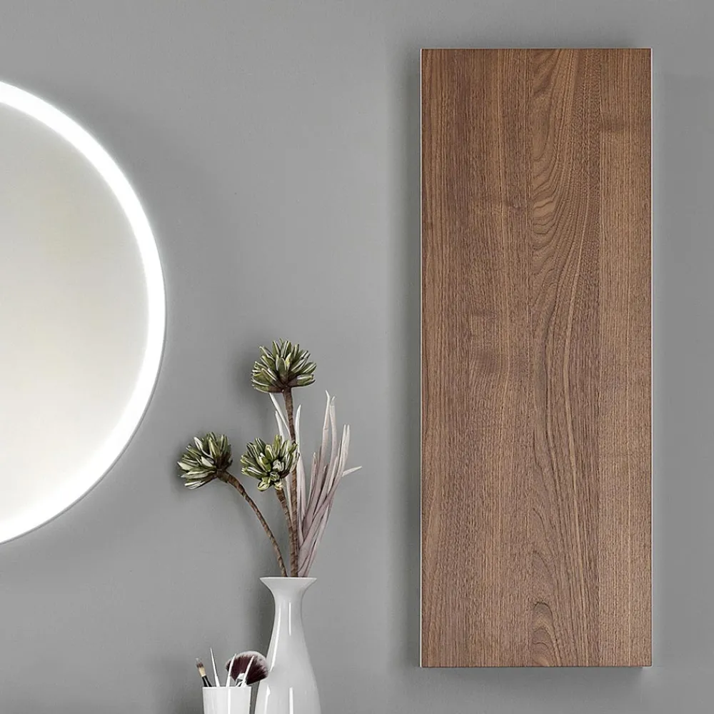 Am Ende des funktionalen Designs steht das Gesamtöffnungssystem mit Push & Pull-System und der runde Spiegel mit 70 cm Durchmesser mit integrierter LED-Beleuchtung und matt weiß lackierter Metallkante.