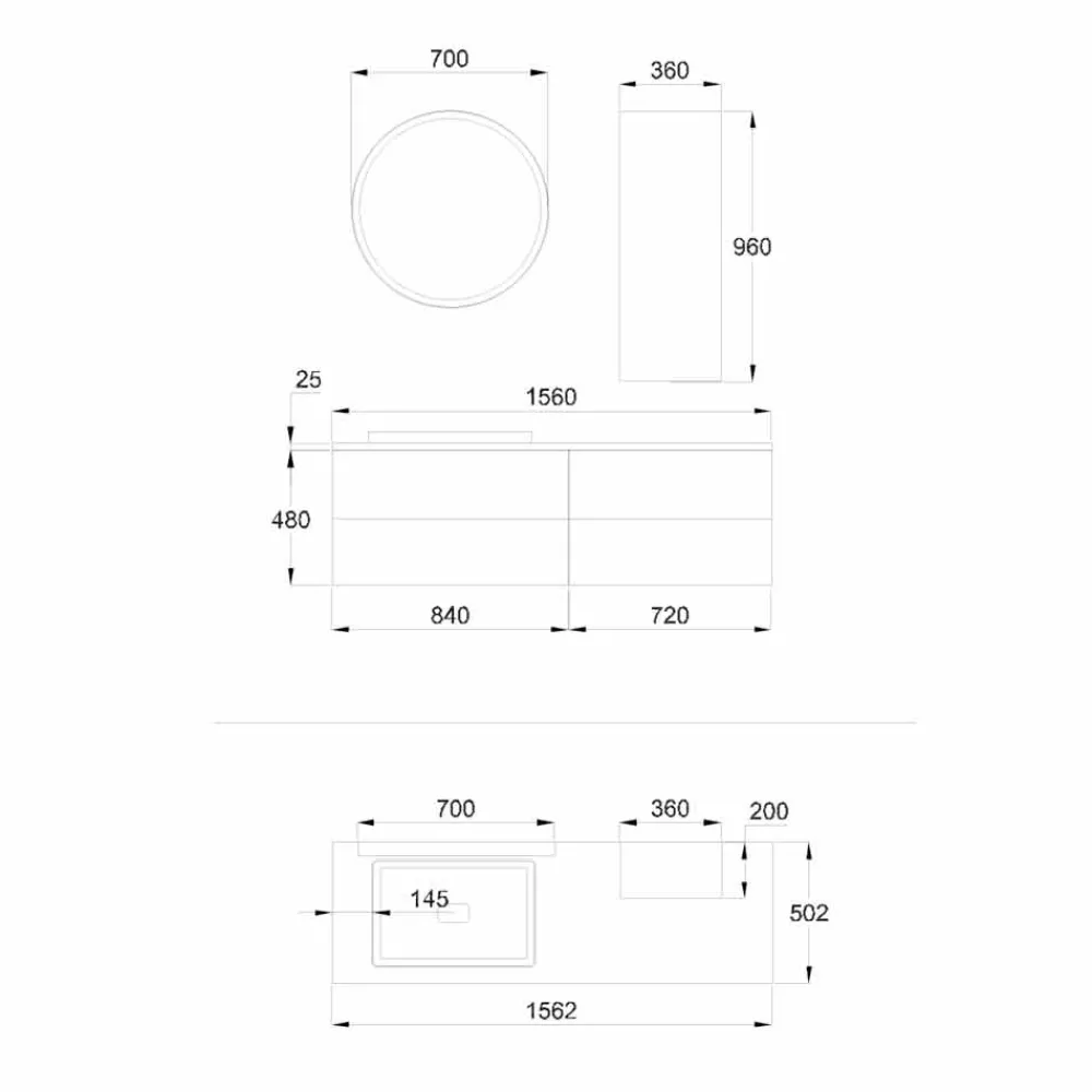 - Waschtischunterschrank komplett mit Platte cm 156 (84 + 72) x50,2×50,5