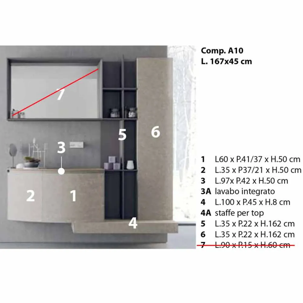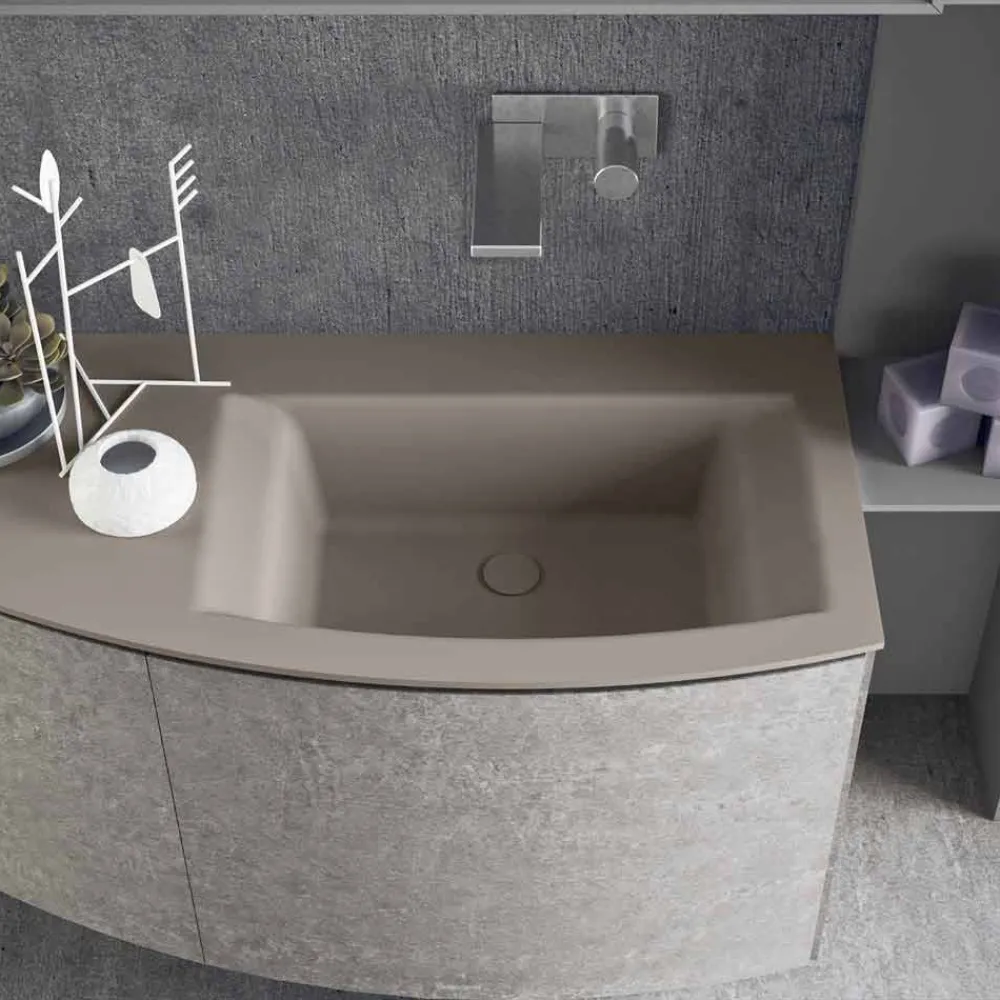 Volumetrische und moderne Badezimmerzusammensetzung, hängendes Design mit integriertem Waschbecken, hergestellt in Italien.