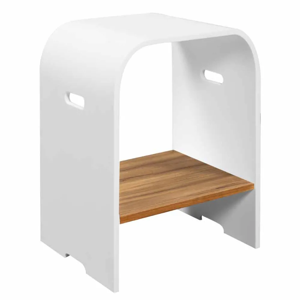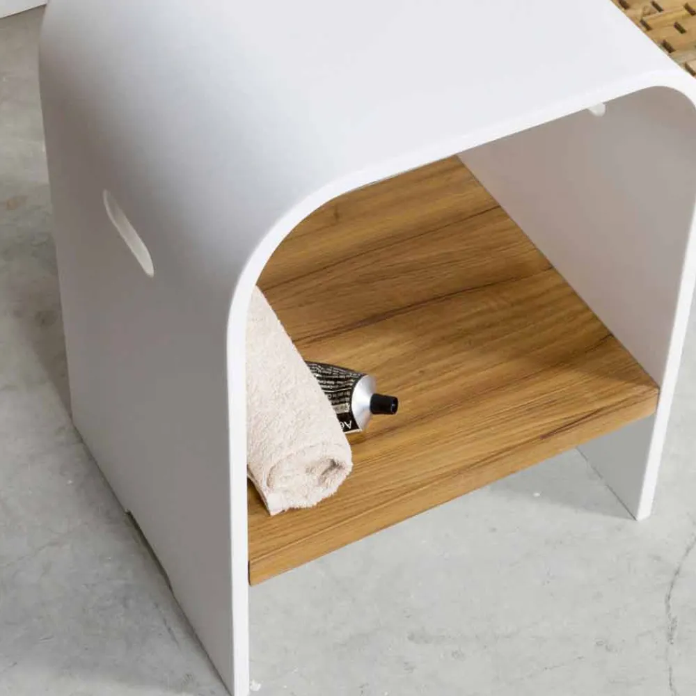Designhocker für Badezimmer aus Teakholz und Hi Macs®