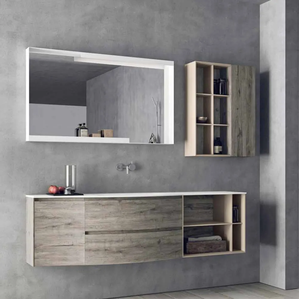 Hängende Designkomposition, moderne und hängende Badezimmermöbel mit eingebautem Waschbecken, Made in Italy.