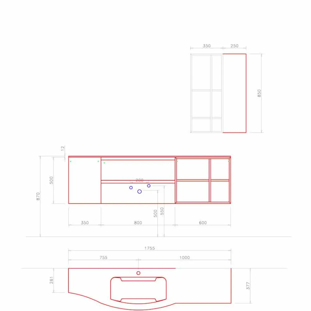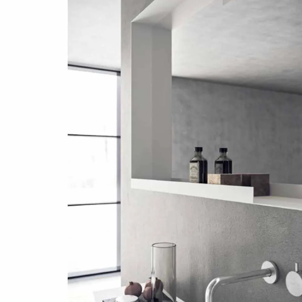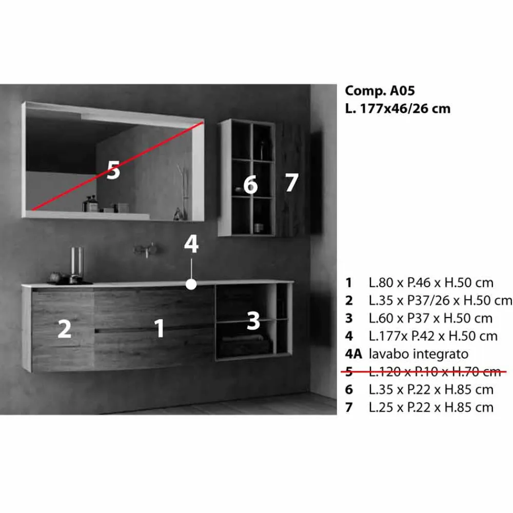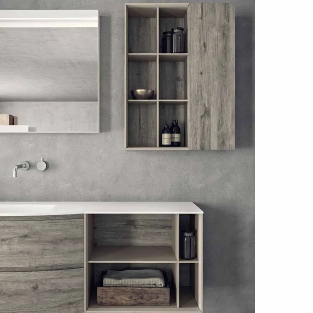Die Besonderheit dieser Zusammensetzung wird durch das eingebaute Waschbecken gegeben, das durch zwei seitliche Seiten gekennzeichnet ist, die sanft zum Becken hin abfallen.