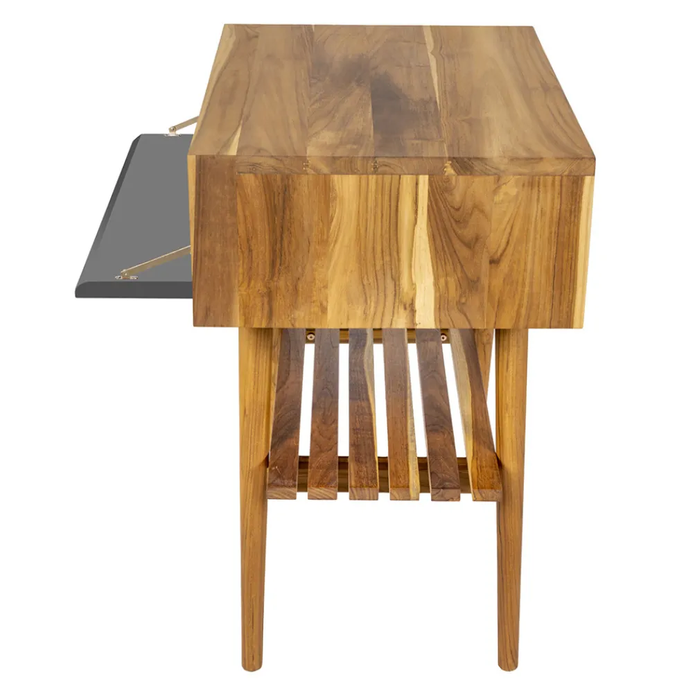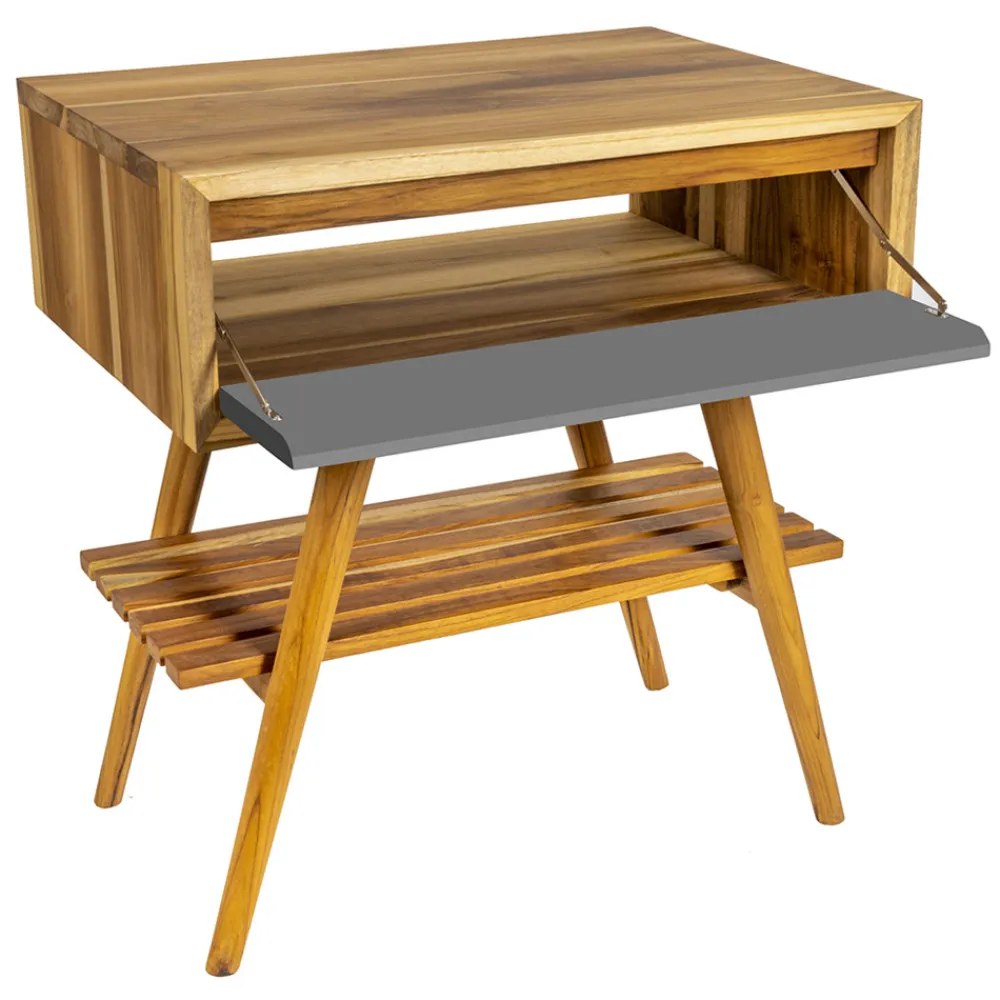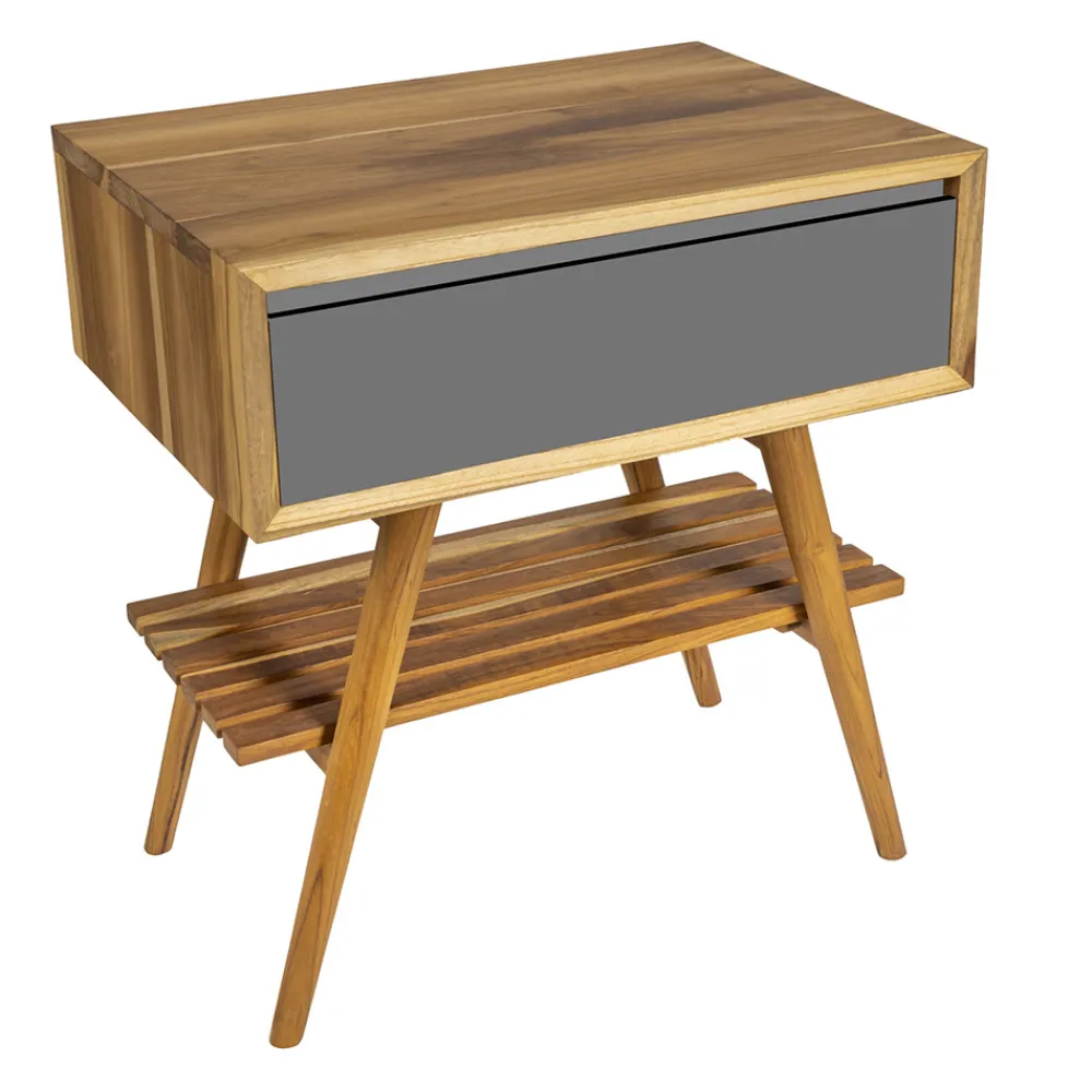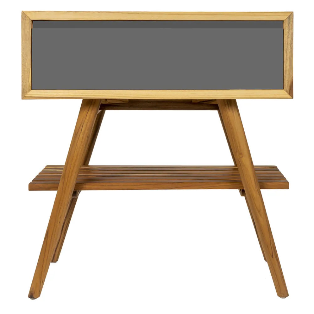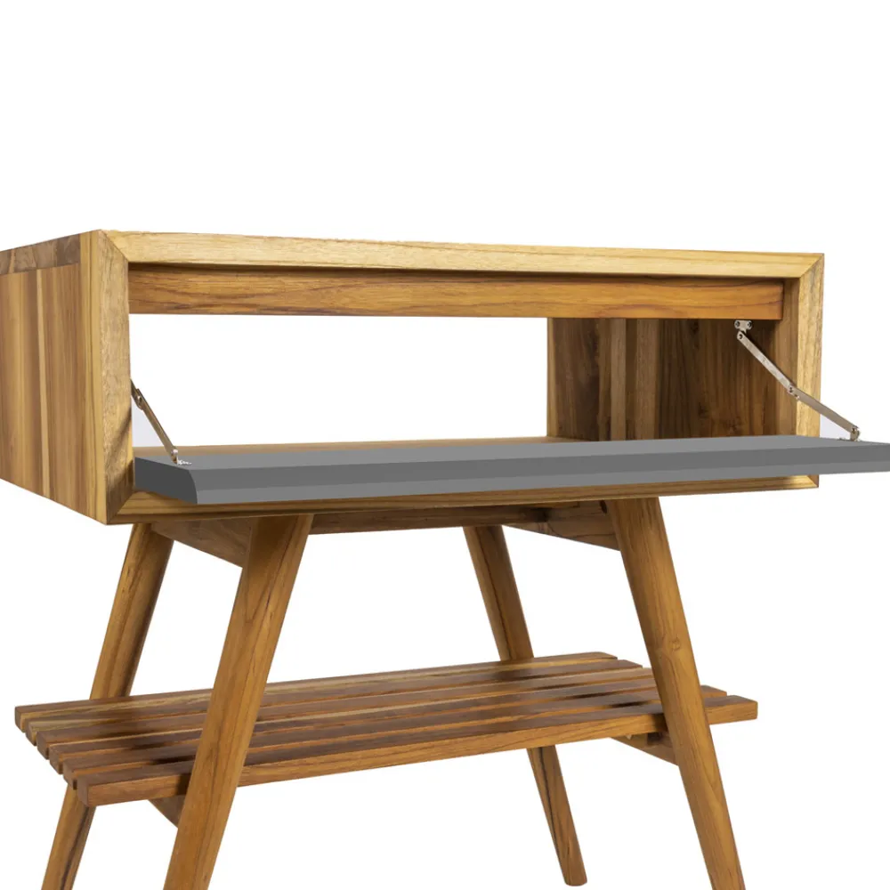 Badezimmerschrank aus Teakholz mit Schublade aus grauem Mahagoni.