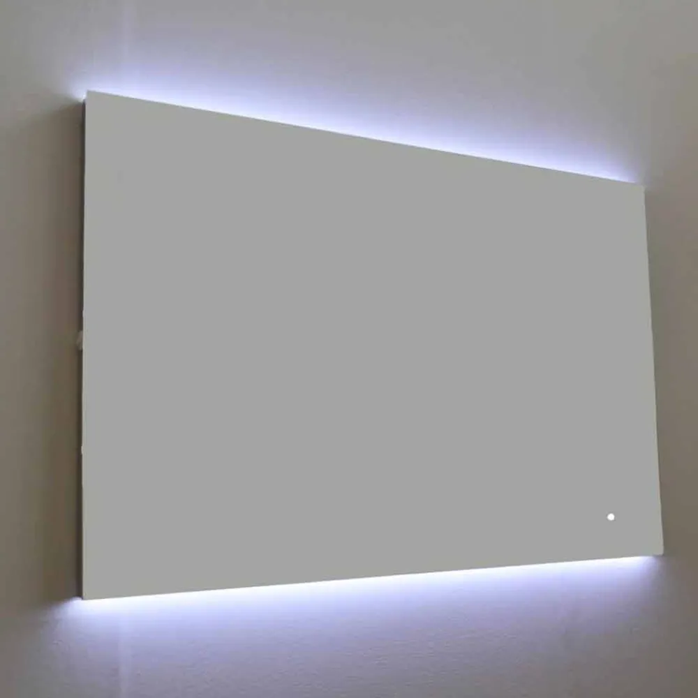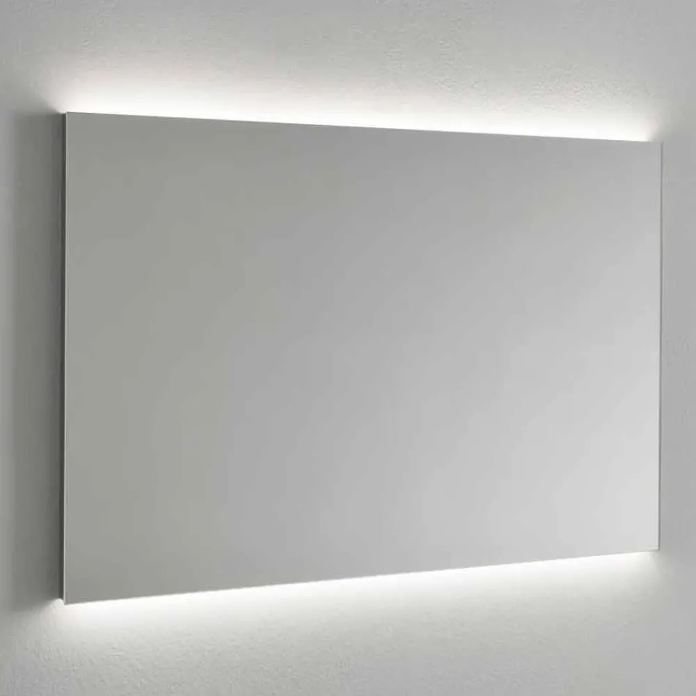 Rechteckiger, hinterleuchteter Design-Wandspiegel mit LED-Licht und Stahlrahmen Made in Italy.