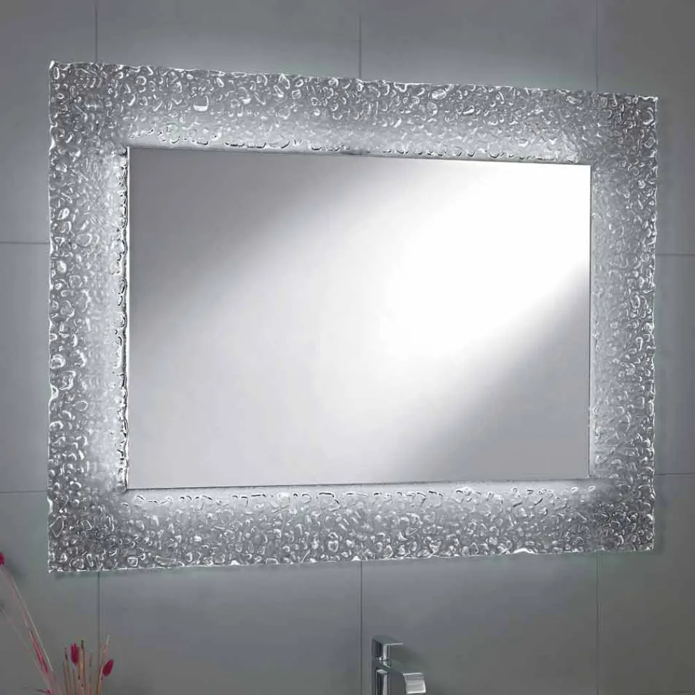Spiegeldekor mit edlem transparentem Glasrahmen mit LED-Hintergrundbeleuchtung. Um jede Umgebung einzigartig und elegant zu machen. Reversible Wandmontage Horizontal / Vertikal.