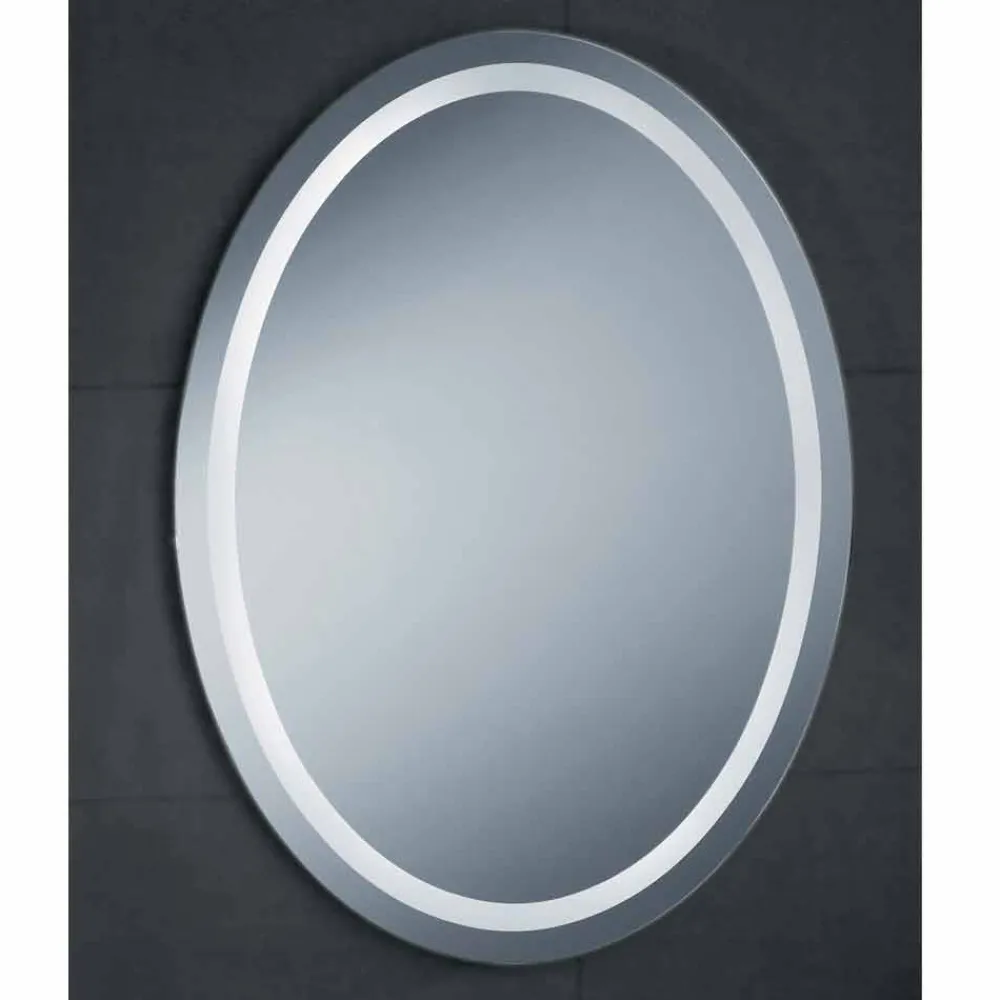 Spiegel mit LED-Beleuchtung in den Spiegel mit Edelstahlkanten integriert.