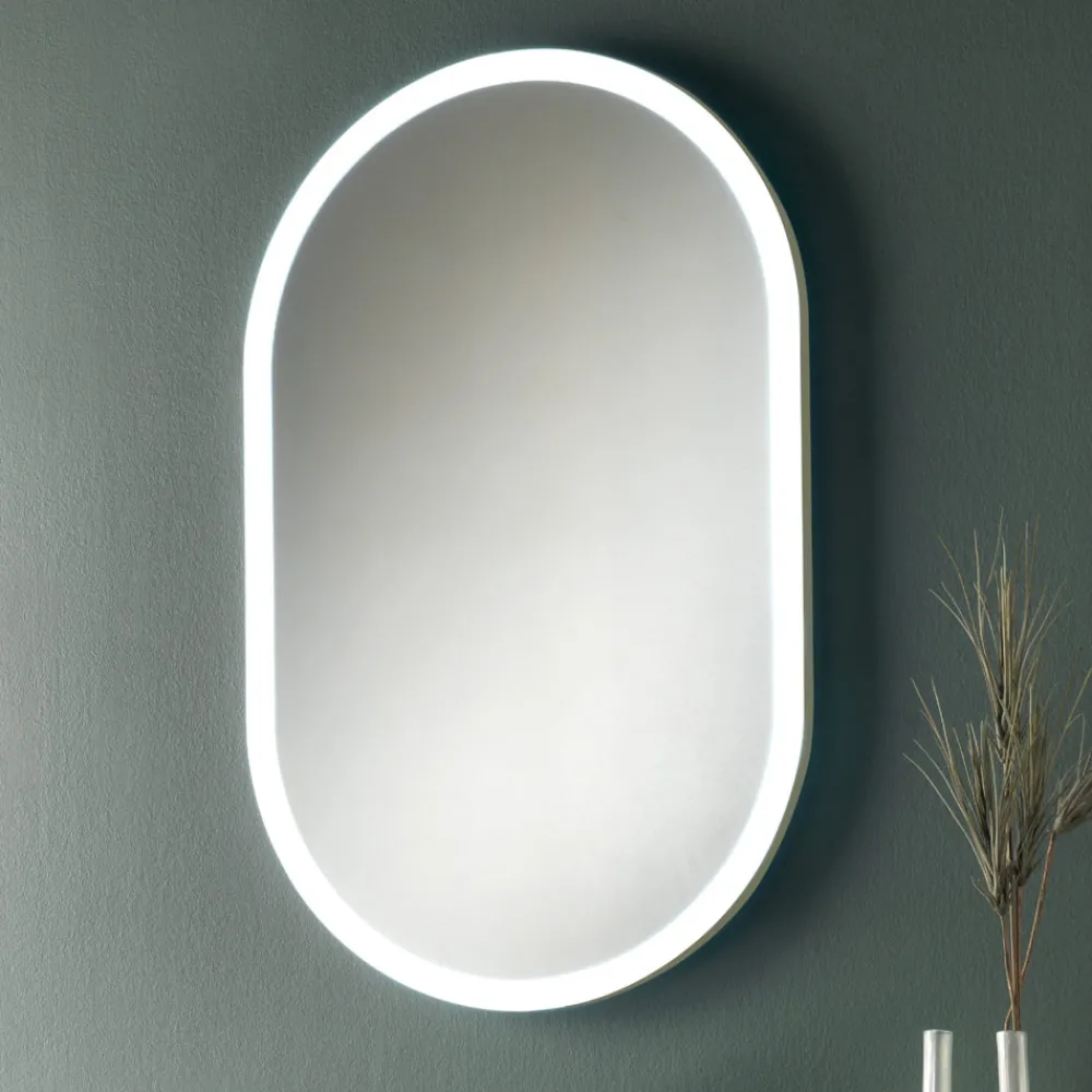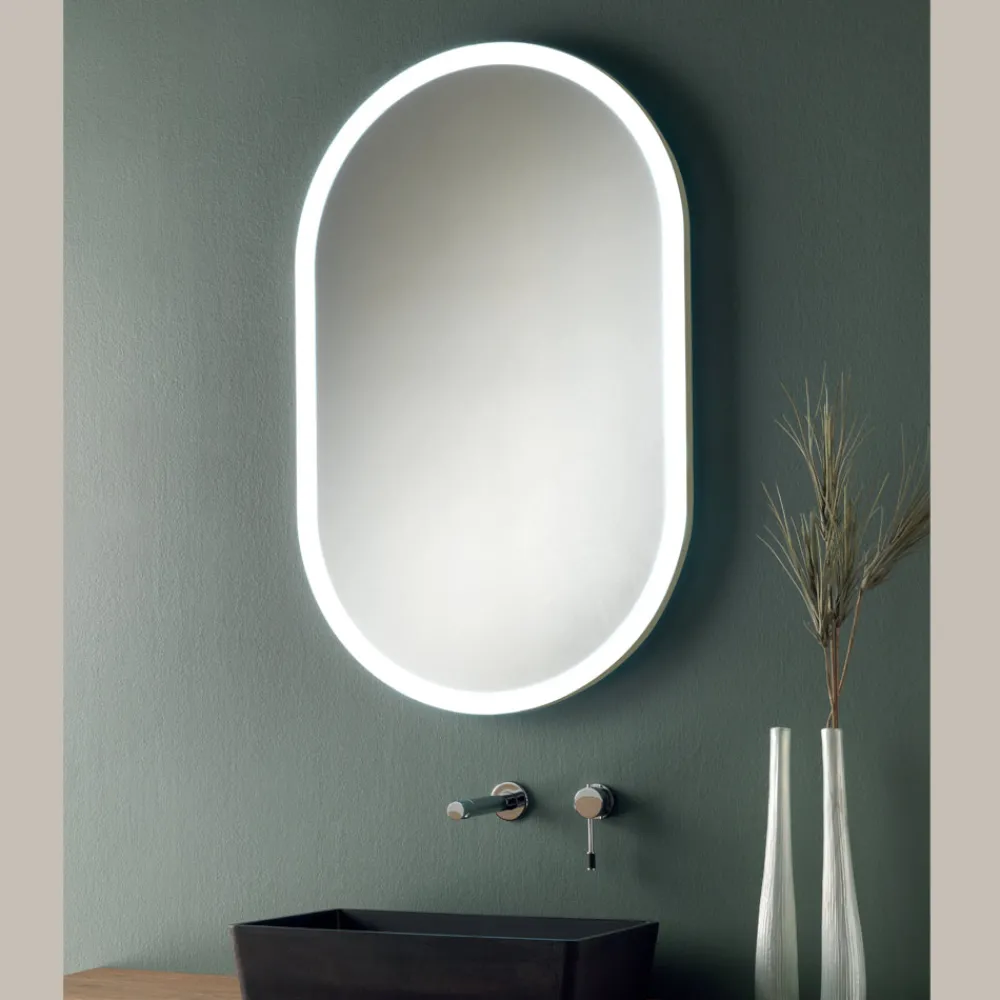 Entdecken Sie die Essenz integrierter Beleuchtung und modernem Design mit diesem ovalen Metallspiegel mit LED-Beleuchtung . Dieser Spiegel vereint Eleganz und technologische Innovation und ist eine raffinierte Ergänzung für jede Umgebung. Er bietet nicht nur Funktionalität, sondern auch einen auffälligen Stil.