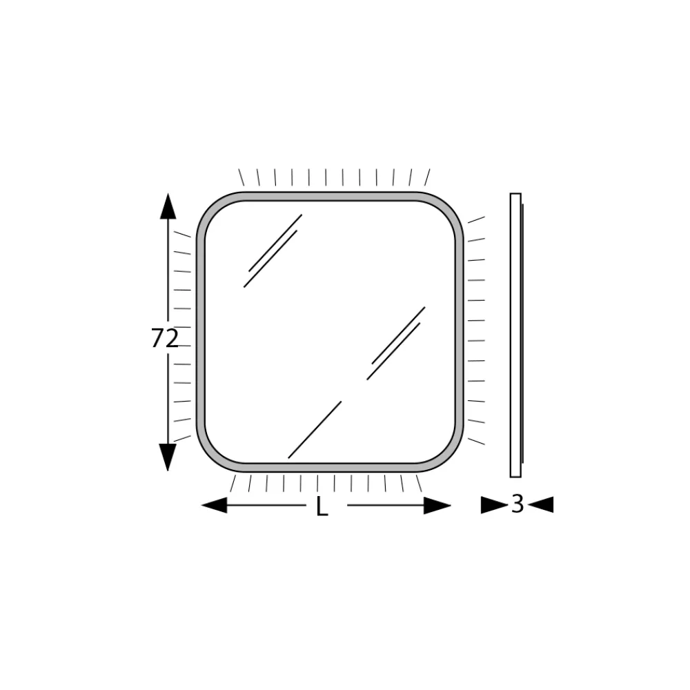 Die abgerundete Form mit raffinierten Ecken macht diesen Spiegel zu einer vielseitigen und attraktiven Ergänzung für eine Vielzahl von Räumen, vom Badezimmer bis zum Schlafzimmer oder als markanten Akzent in einem Wohnbereich. Die LED-Technologie unterstreicht nicht nur das einzigartige Design, sondern ist auch energieeffizient und sorgt für eine langlebige Beleuchtung.