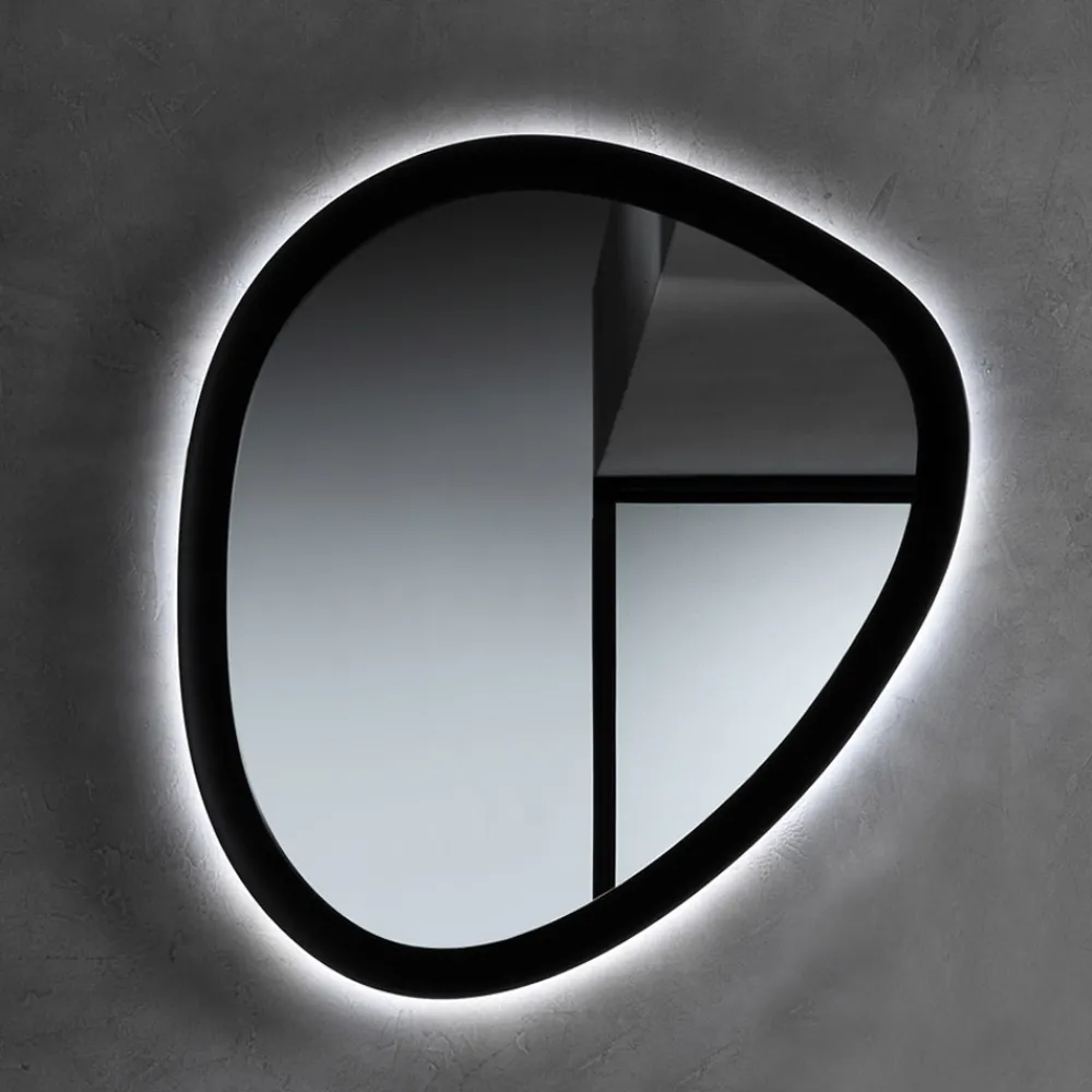 Tauchen Sie ein in den Charme dieses hinterleuchteten Spiegels , ein echtes Einrichtungselement, das jede Wand in eine moderne Kunstgalerie verwandelt. Mit seiner Form distanziert er sich von der Konvention und wird zu einem Blickfang, der die Aufmerksamkeit auf sich zieht und die Fantasie anregt.