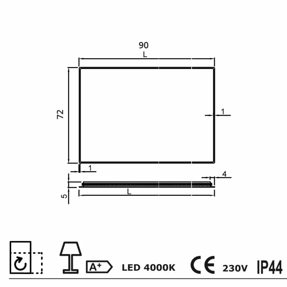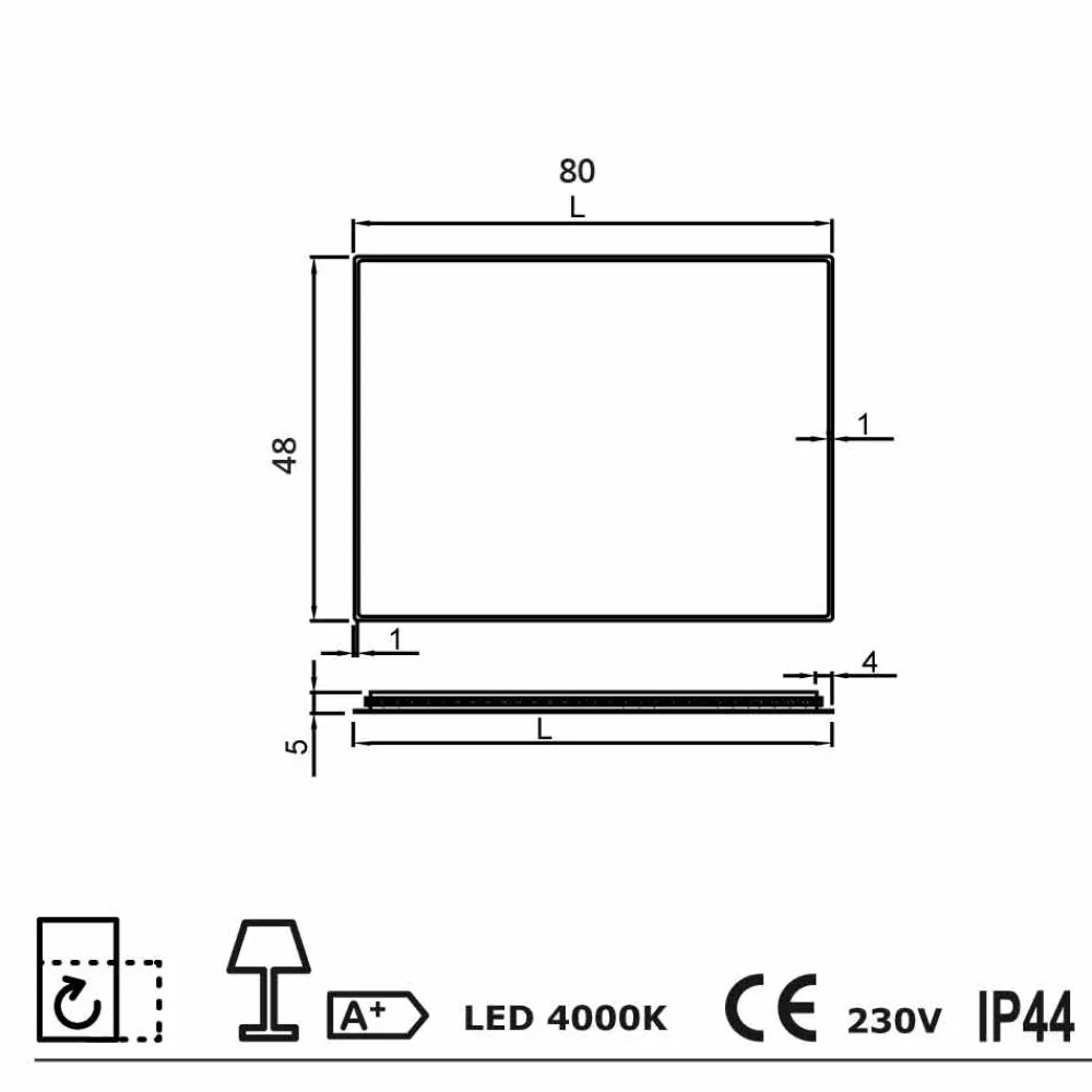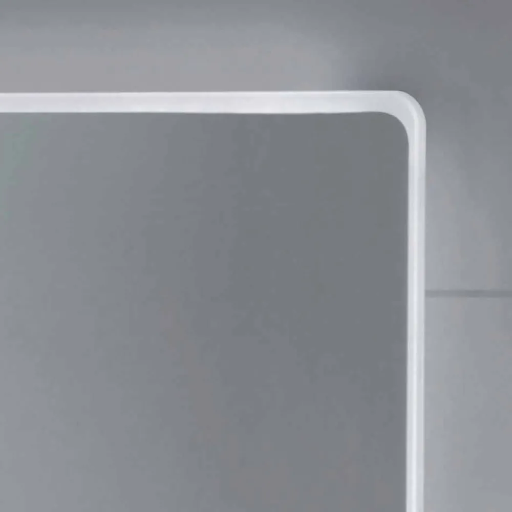 Eleganter Spiegel mit integrierter LED-Beleuchtung mit weichen und essentiellen Linien. Die leicht abgerundeten und satinierten Kanten machen diesen Spiegel extrem hell und für jede Umgebung geeignet. Reversible Wandmontage Horizontal / Vertikal.