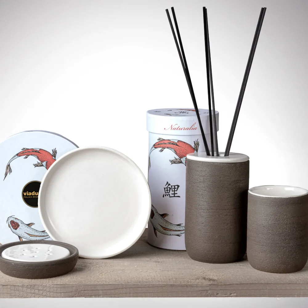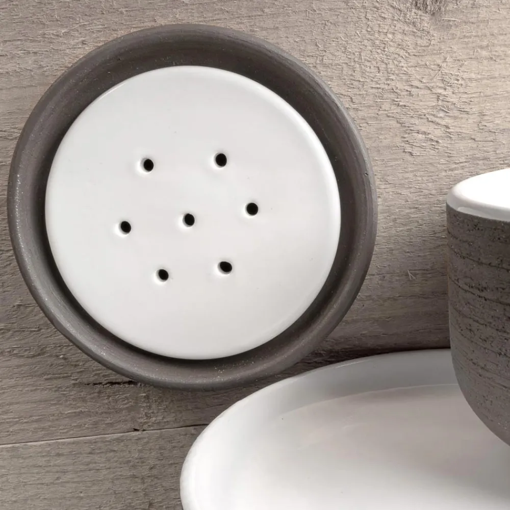 Badaccessoires für die Arbeitsplatte aus Ton mit weiß emaillierter Innenseite Made in Italy.