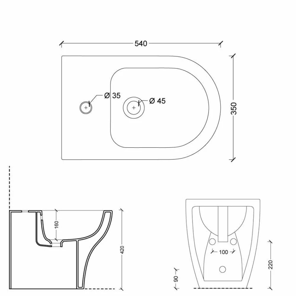 Einloch-Keramik-Bidet für internen Wasseranschluss. Inklusive Befestigungssatz.