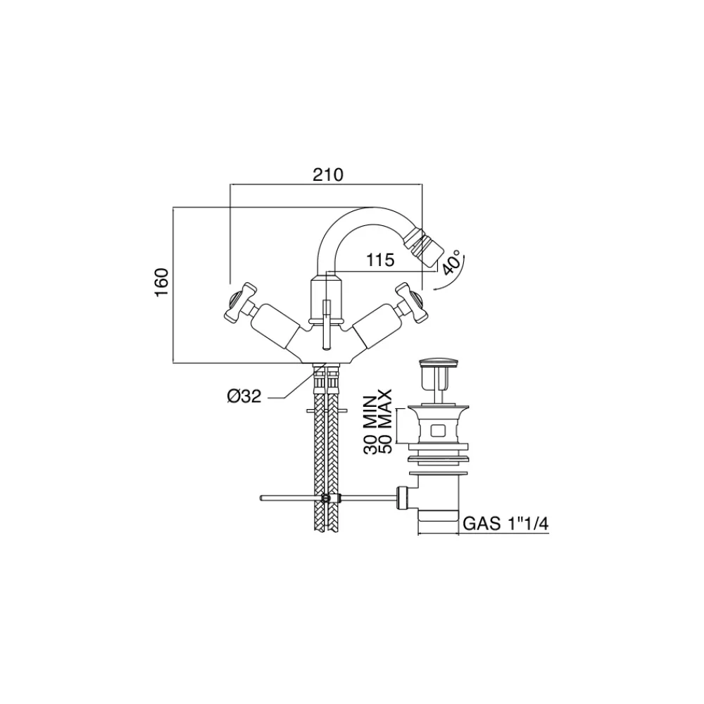 Schweres Messing Bidet Monophon mit Abfluss Made in Italy