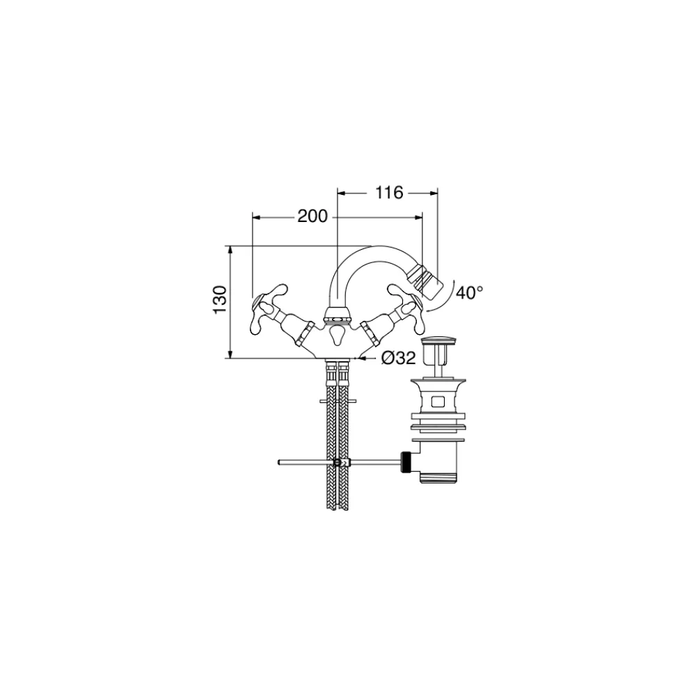 Made in Italy Klarisa Messing Bidet-Einlochbatterie, Vintage-Stil.