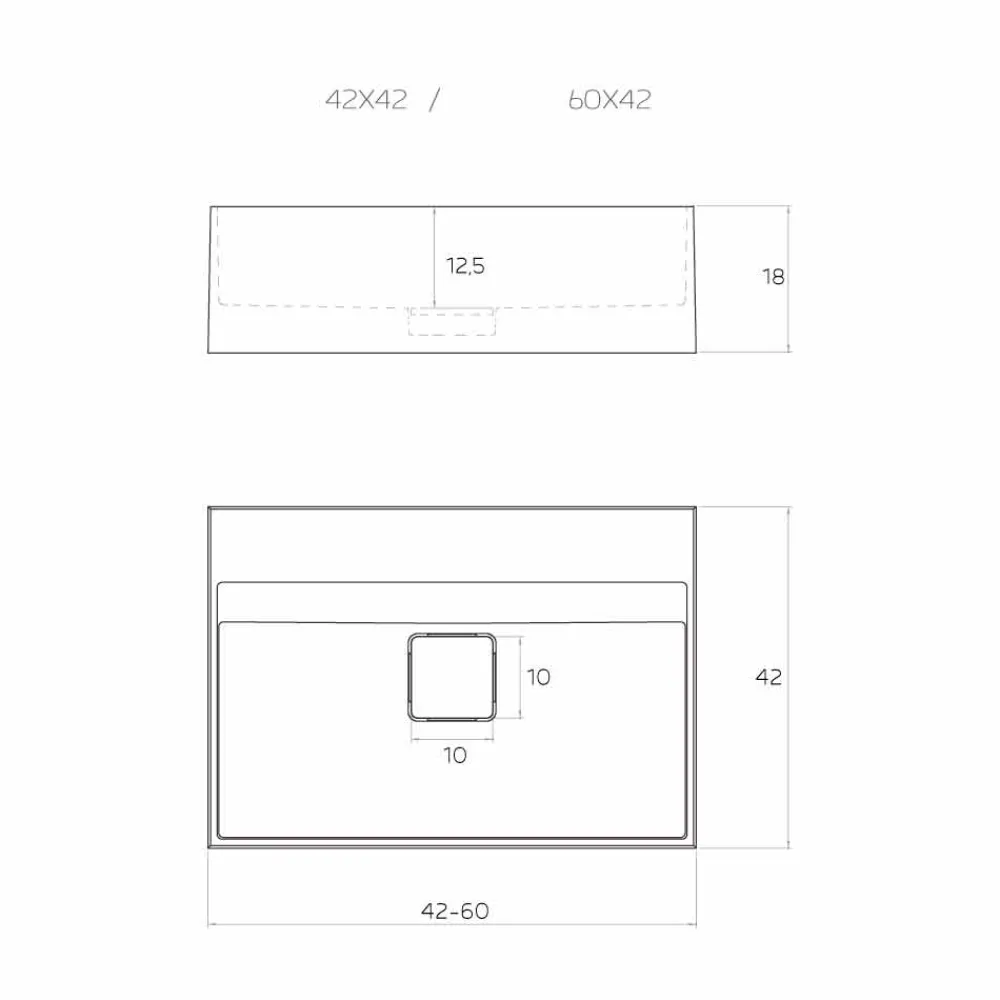 – L 60 x P 42 x H 18 cm.