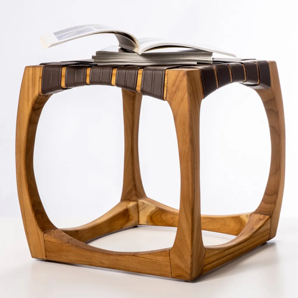 Massiver Badezimmerhocker aus Teakholz