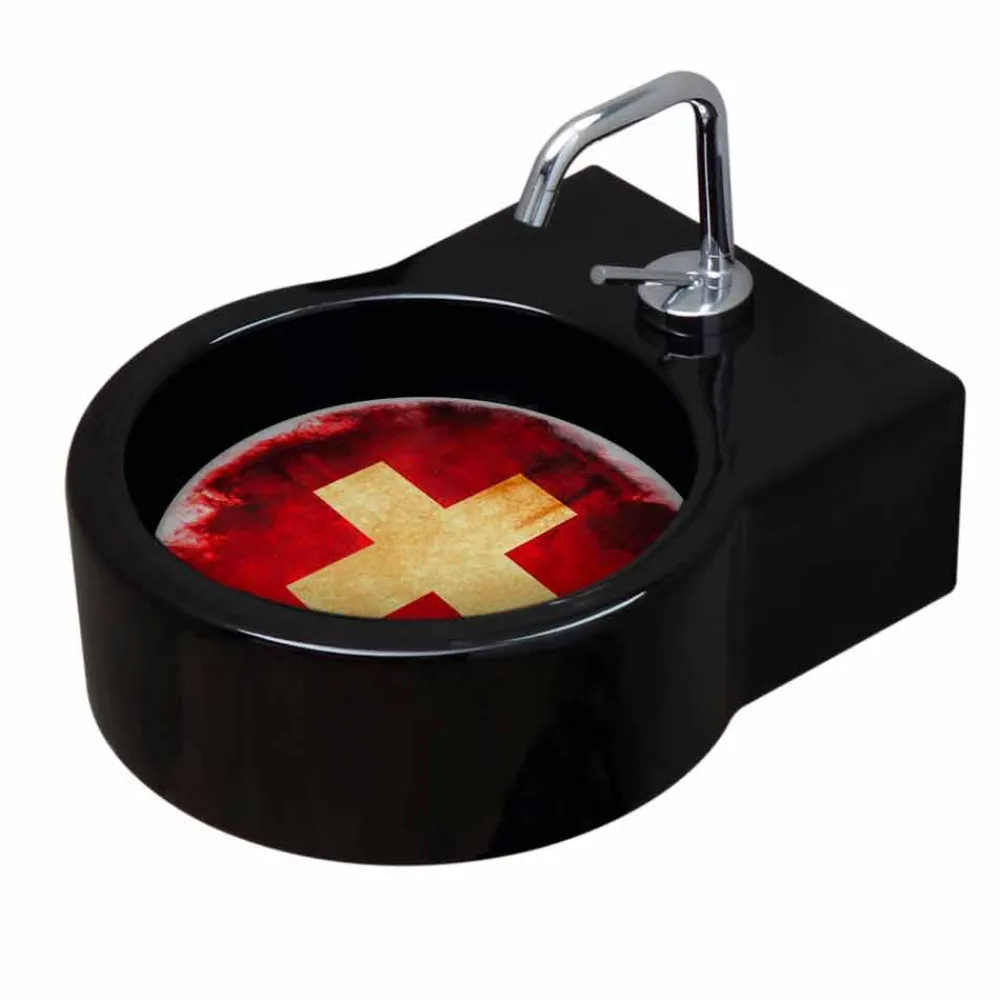 Die Besonderheit ist, dass es sich um ein Handwaschbecken mit kontinuierlichem Wasserfluss handelt, mit der Möglichkeit, als Stütze oder aufgehängt installiert zu werden.