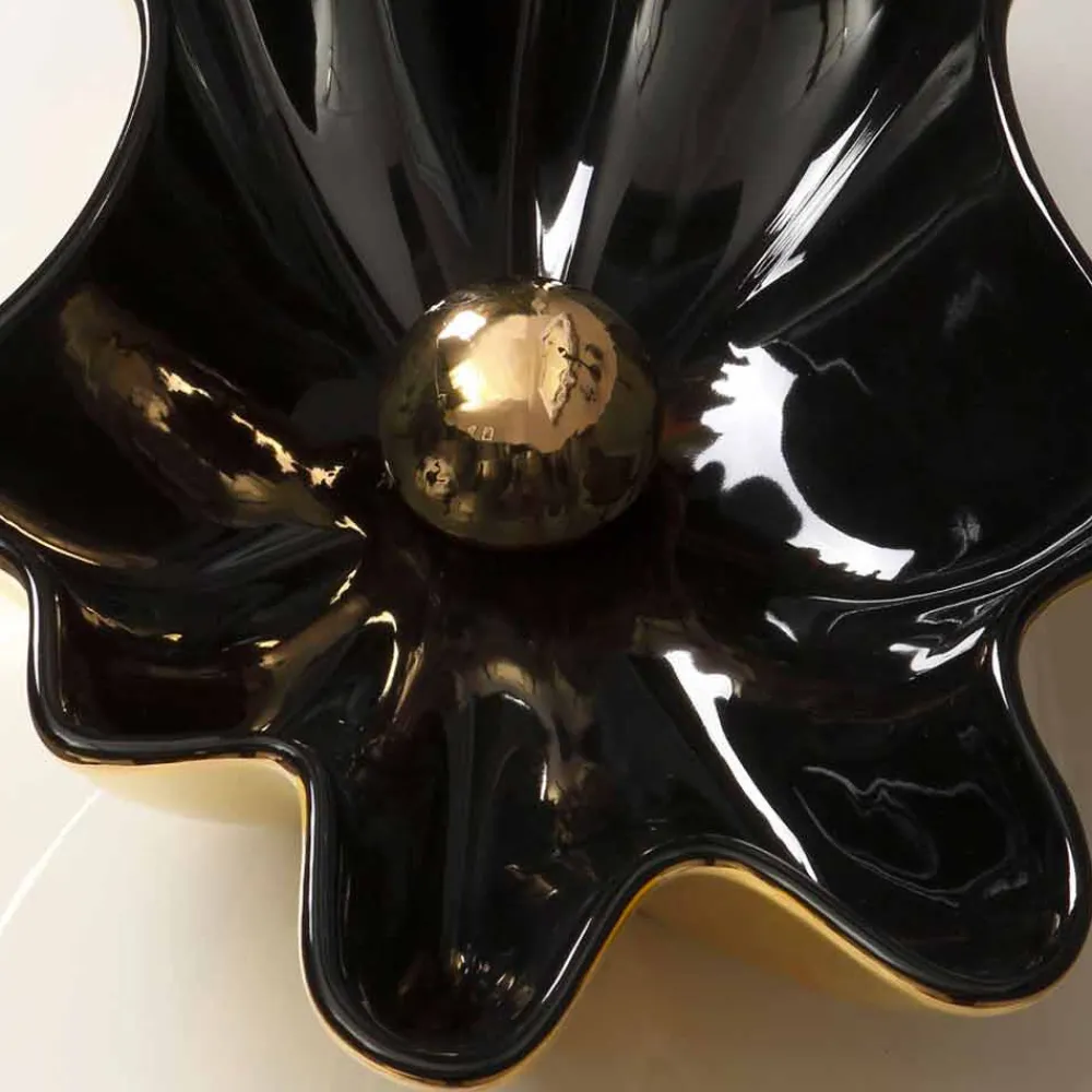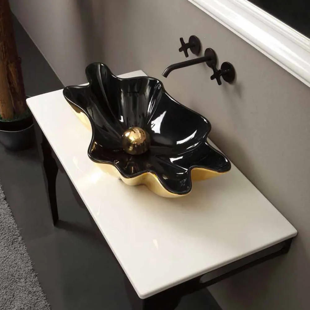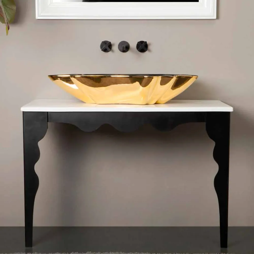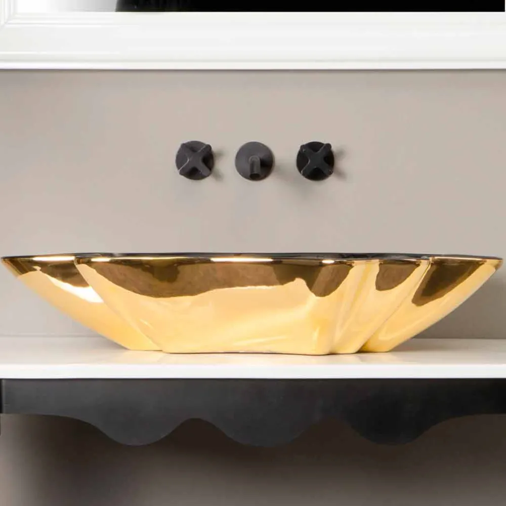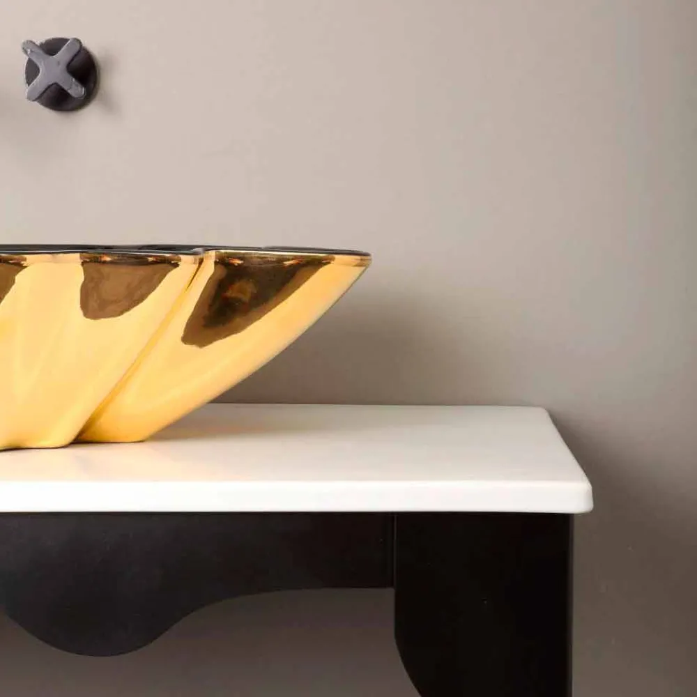 Aufsatzwaschbecken aus schwarzer und goldener Keramik, hergestellt in Italien Rayan