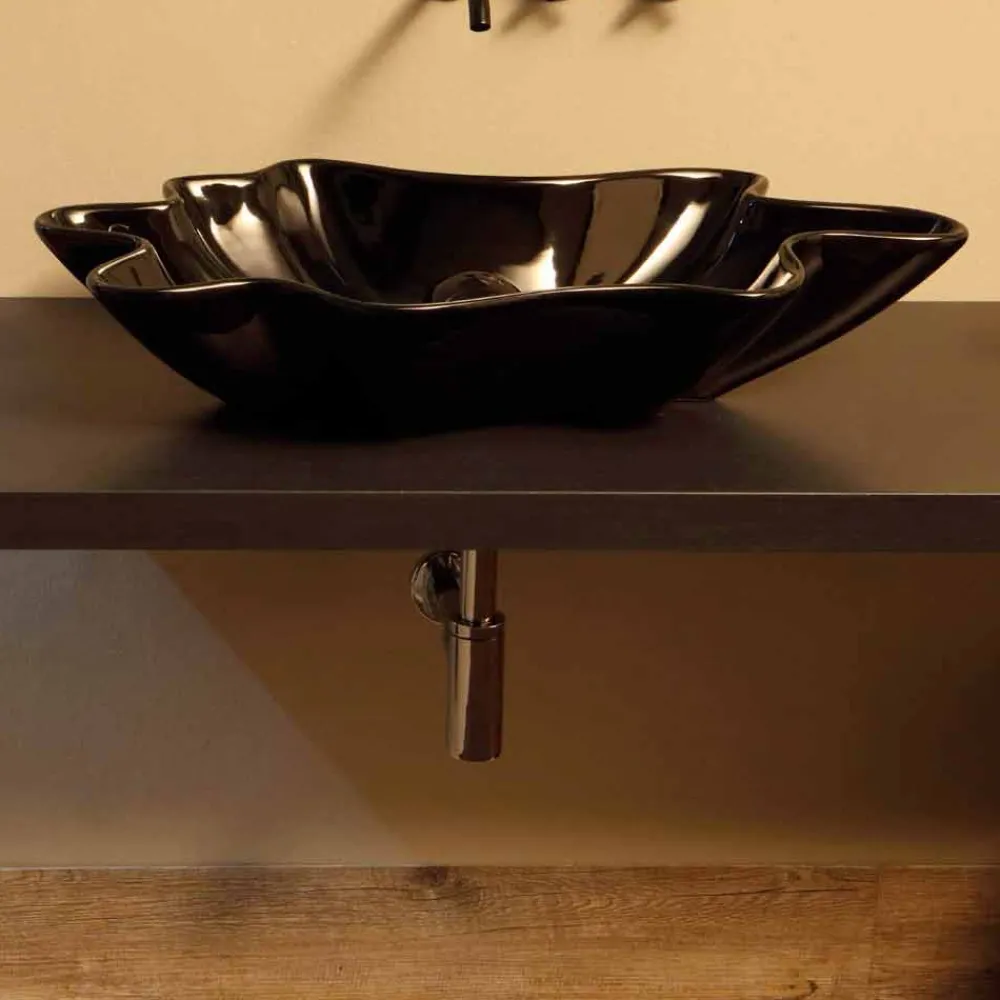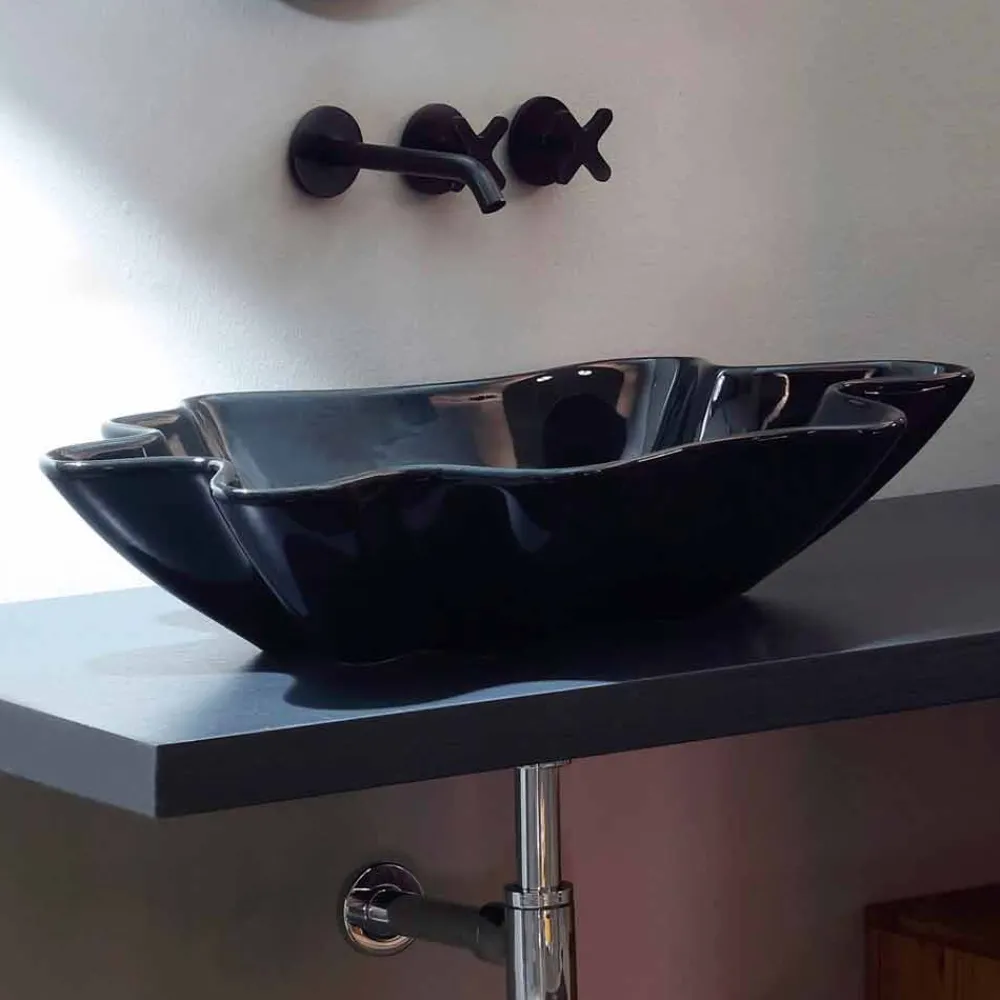 Aufsatzwaschbecken aus schwarzer Keramik in modernem Design, hergestellt in Italien Rayan