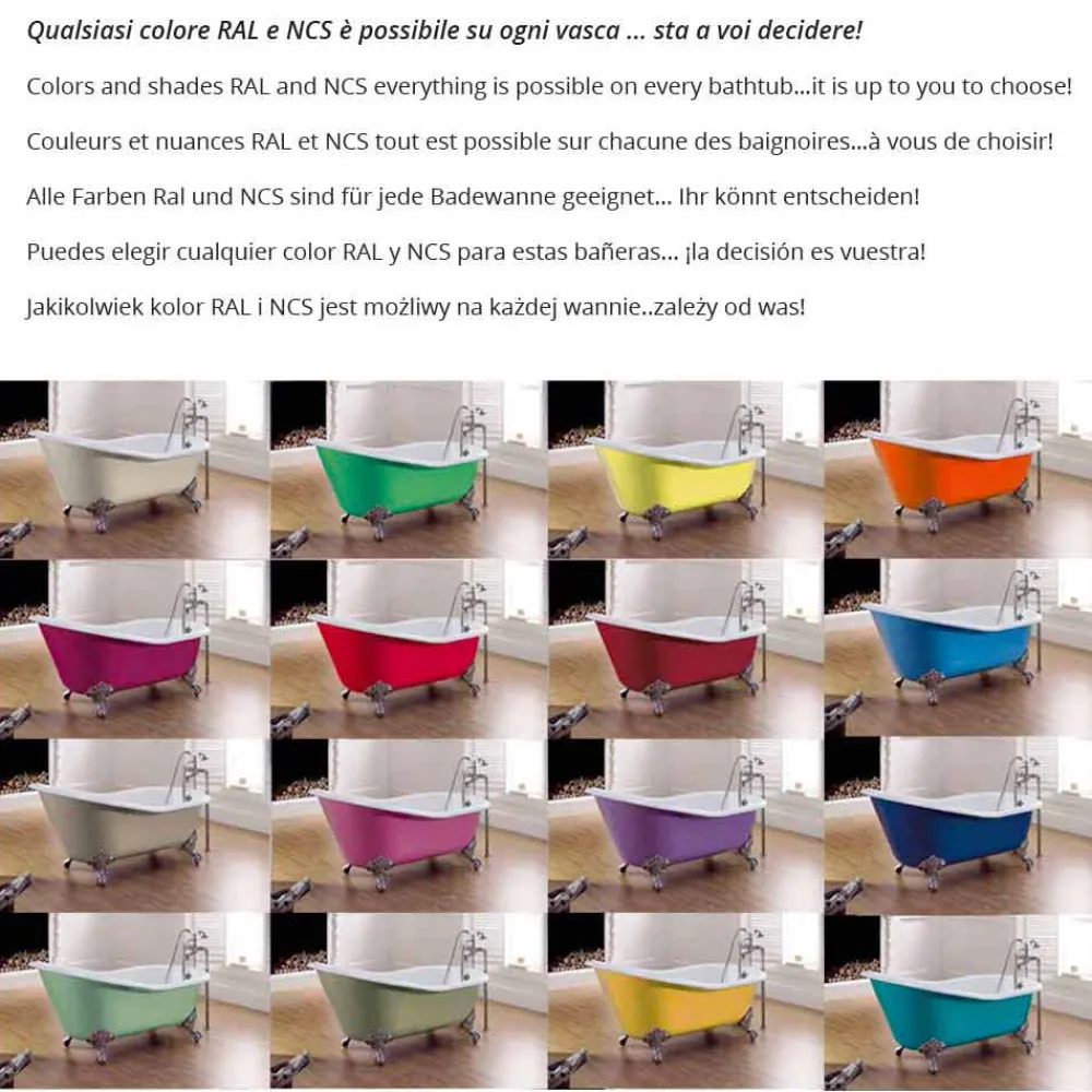 Freistehende Badewanne komplett aus Gusseisen, innen emailliert mit 2 mm Titan und außen mit einer breiten Palette von Farben lackiert. Badewanne, die den Gipfel des Luxus darstellt. Badewanne in verschiedenen Größen erhältlich, wählen Sie diejenige, die am besten zu Ihnen passt!