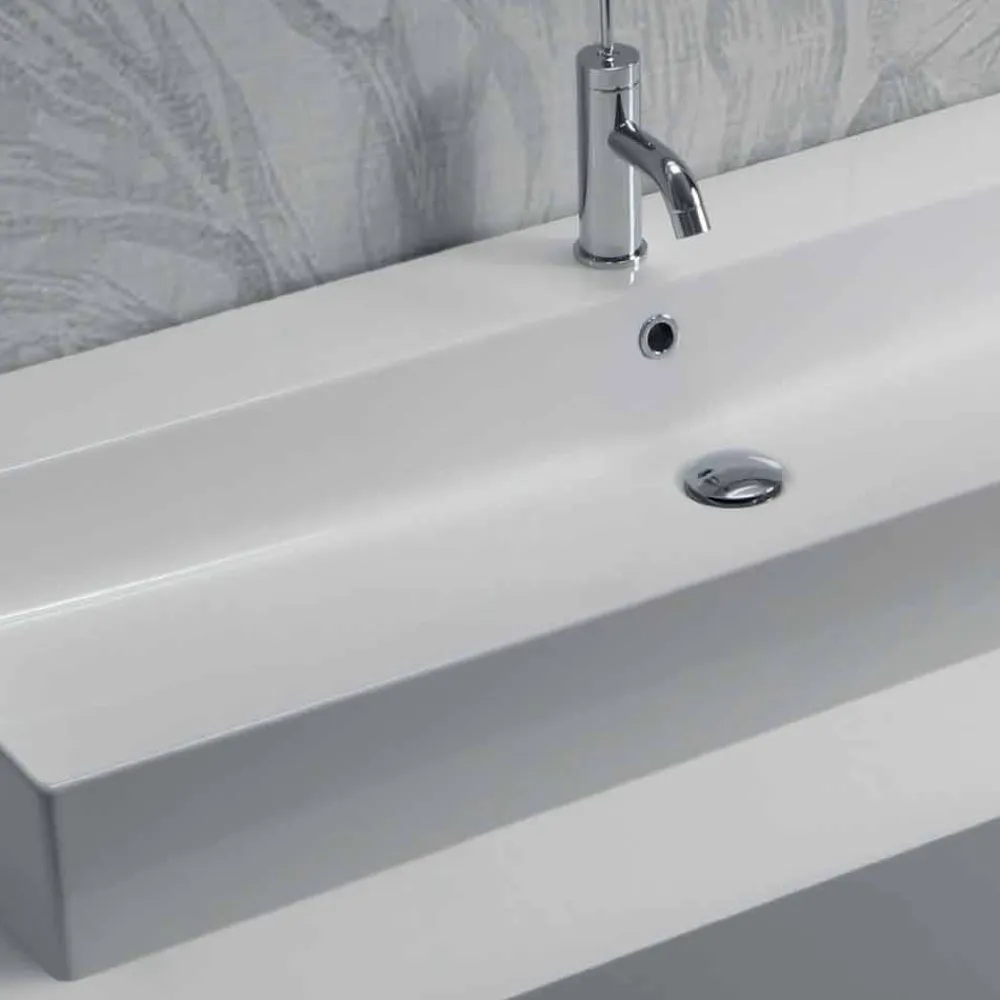 besteht aus modernen und minimalen Waschbecken mit einem charakteristischen schlanken und eleganten Profil. Gerade und geschwungene Linien verbinden sich zu einer gelungenen Synthese aus Technik und Design.Die Artikel dieser Linie haben ein modernes und zeitgemäßes Design , wie zum Beispiel das Aufsatzwaschbecken L60 cm . Das verwendete Material ist das glasartige Porzellan, eine Art glasierte Keramik .