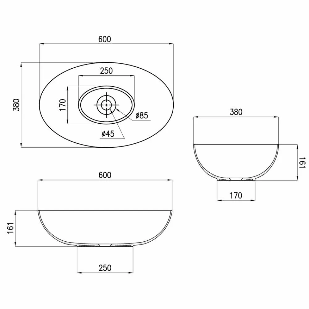| Maße | Ø 60 x P 38 x H 16,1 cm |