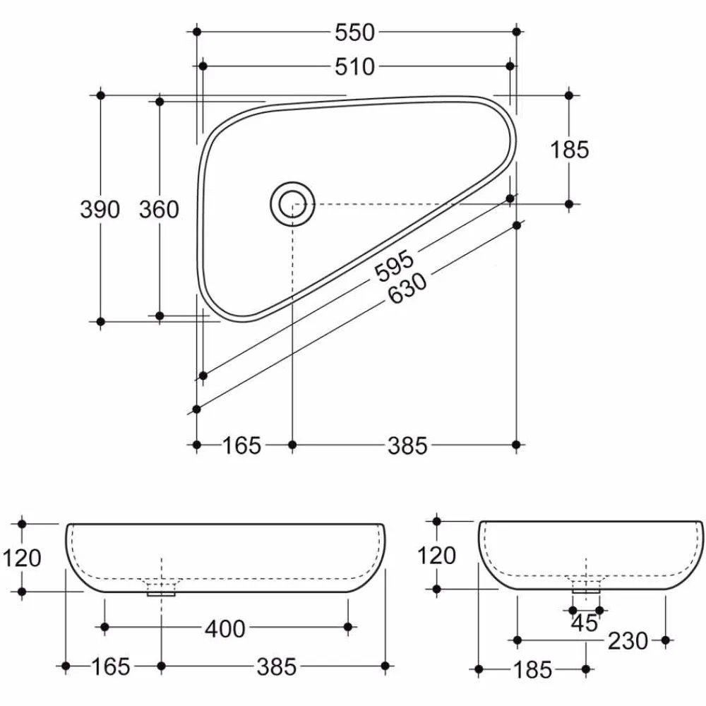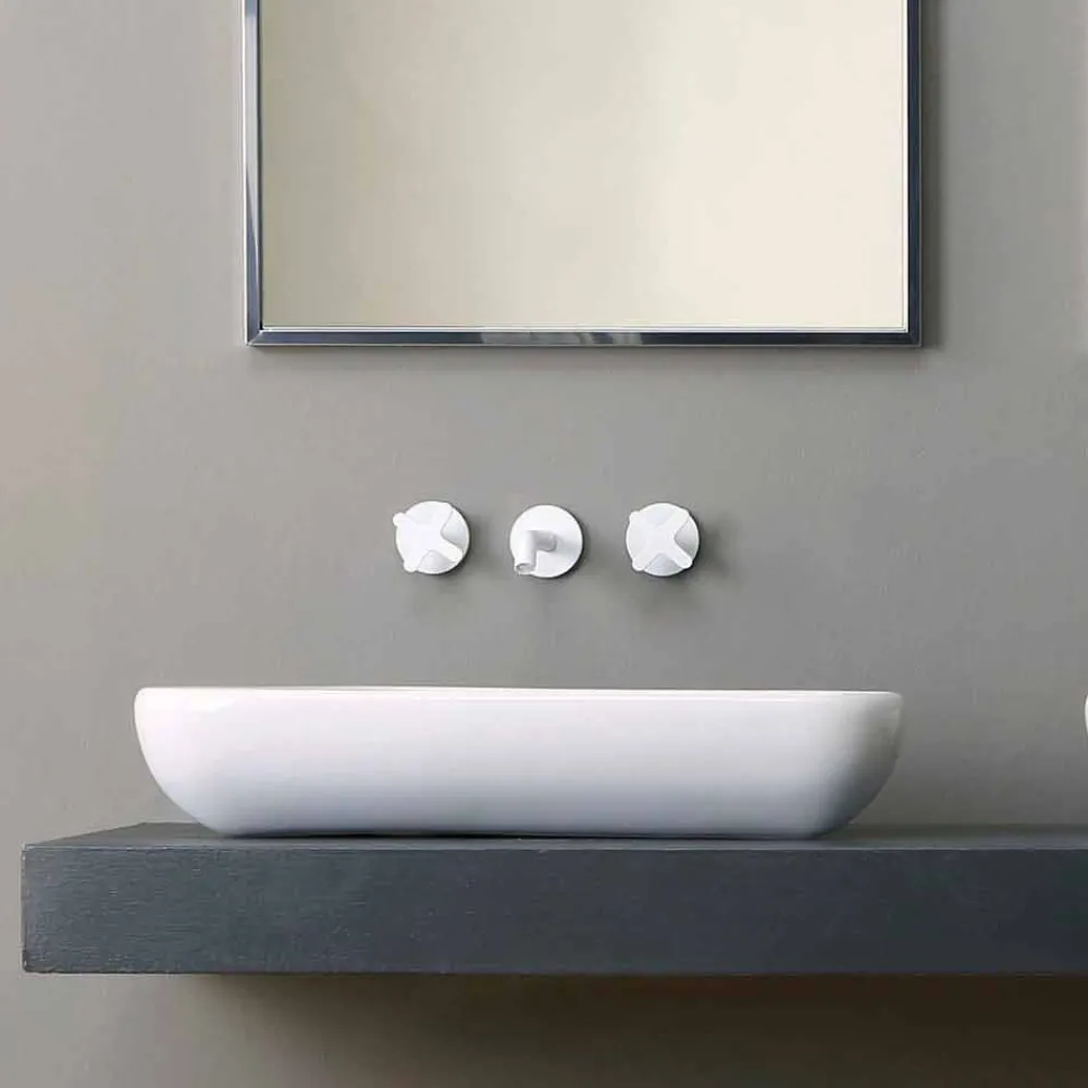 Waschbecken in modernem Design mit geometrischer Form, inspiriert von der Perfektion des Dreiecks.