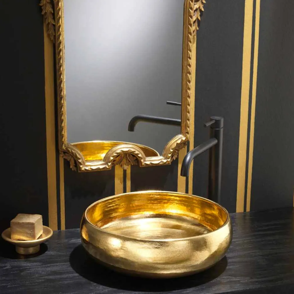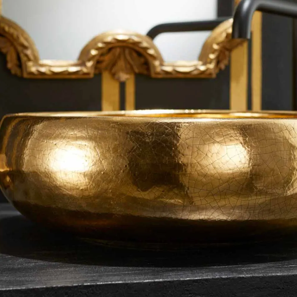 Aufsatzwaschbecken aus italienischer Raku-Keramik mit 24 Karat Gold-Finish.