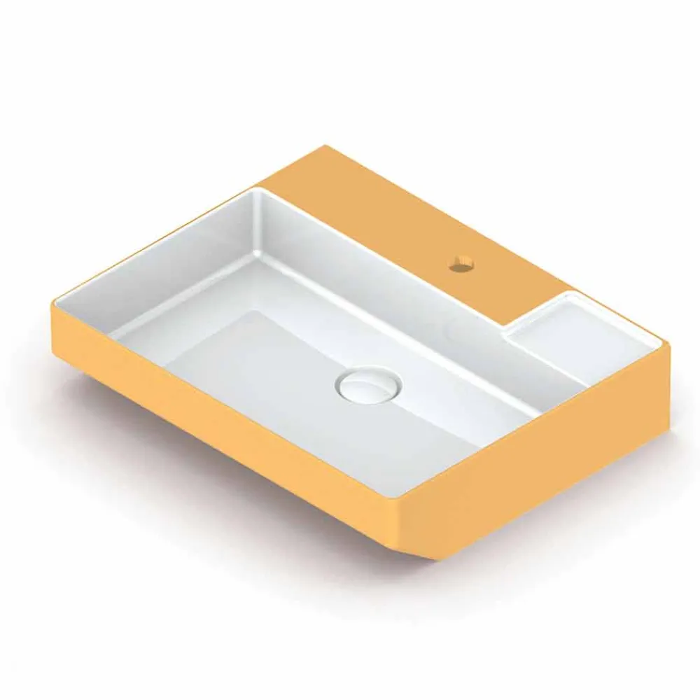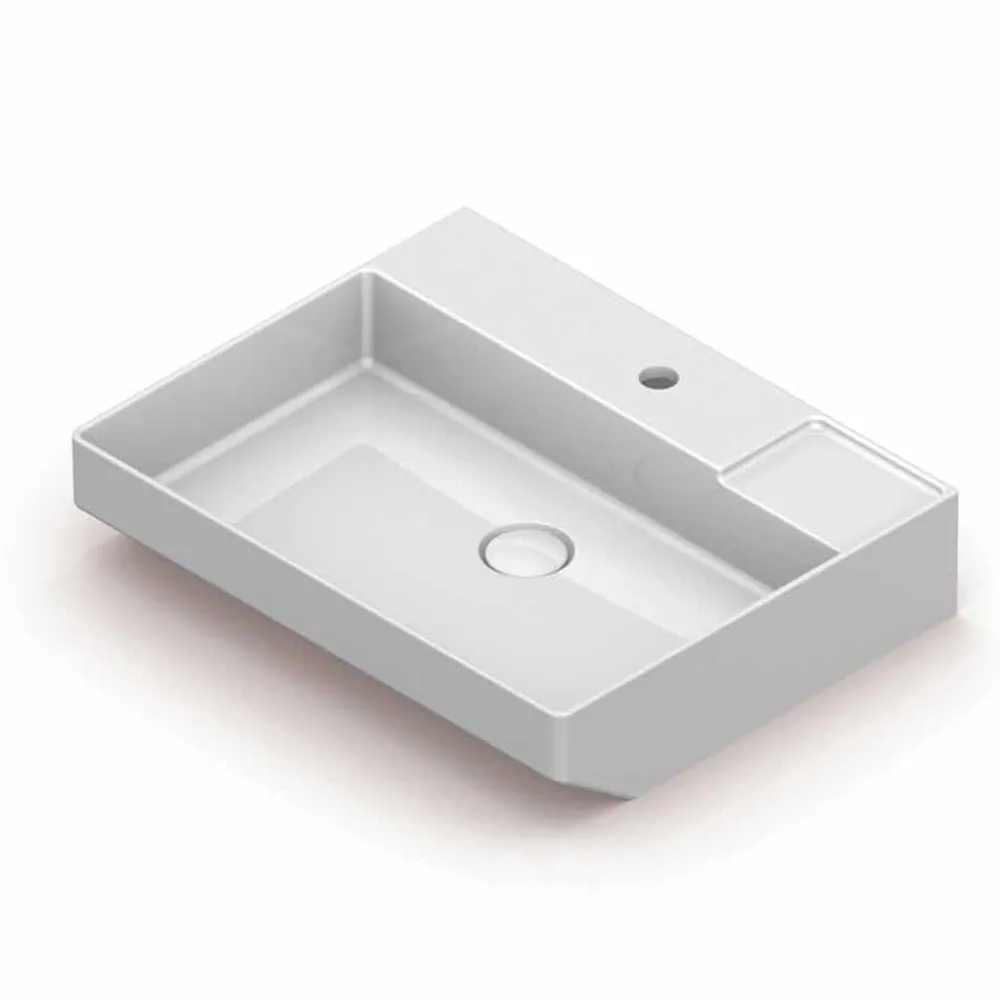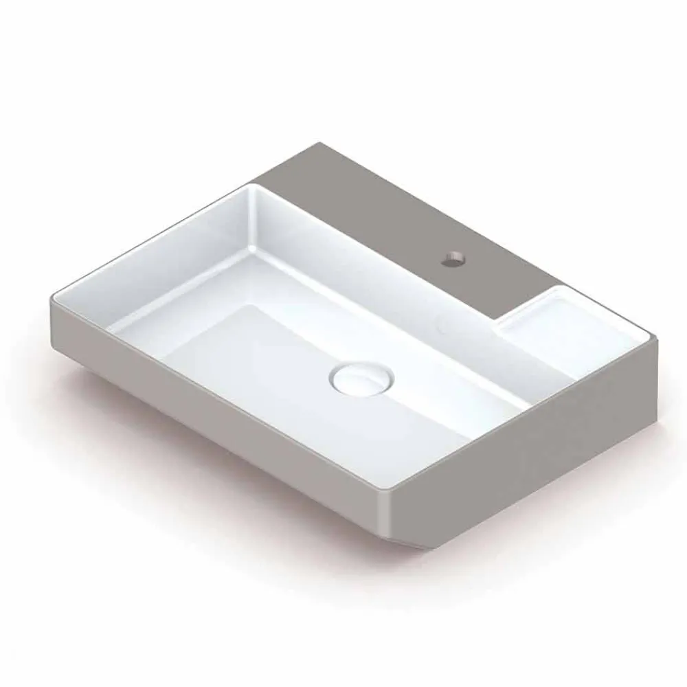 Viviano ist eine wunderbare Arbeitsplatte oder Wandspüle, die in Italien in Keramik handgefertigt wird. Sie zeichnet sich durch scharfkantige Formen und eine starke Persönlichkeit aus und eignet sich perfekt, um Ihr Badezimmer mit Stil und Design auszustatten.