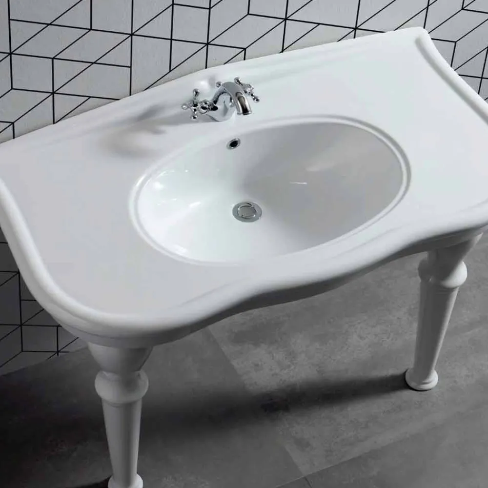 Die Spüle Avise ist mit einem Mittelloch ausgestattet und in der Wandversion oder mit Beinen erhältlich . Es wird aus glasartigem Porzellan hergestellt , einer Art glasierter Keramik, die bei 1200 ° C gekocht wird . Es ist ein Material, das gegen Säure, Hitze, Stöße und Kratzer beständig ist . Es ist hygienisch , pflegeleicht und verblasst nicht mit der Zeit.