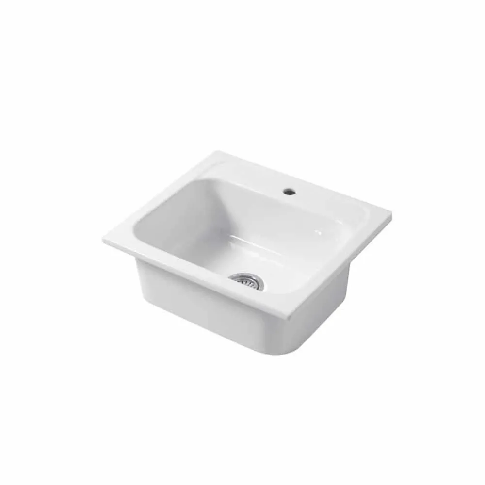 Die Produktion erfolgt vollständig in Italien nach strengen Qualitätsstandards und sorgfältigen Materialuntersuchungen, z. B. in glasartigem Porzellan . Diese besondere Art glasierter Keramik, die bei 1200 ° C gekocht wird, besitzt Eigenschaften, die sie besonders für die Herstellung von Spülen geeignet machen. Es ist beständig gegen Säure, Hitze, Stöße und Kratzer und verblasst nicht im Laufe der Zeit. Es ist auch hygienisch und leicht zu reinigen .