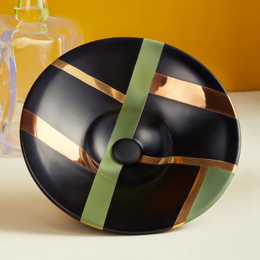 - Inneres Jolie-Reliefdekor auf mattschwarzer Emaille, außen mattschwarzes Email