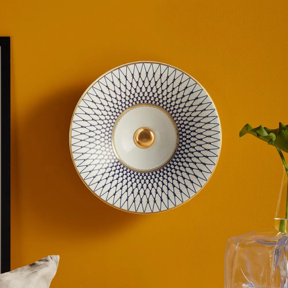 Halbeinbauwaschbecken aus handkoloriertem französischem Porzellan höchster Qualität, vollständig in Italien hergestellt.