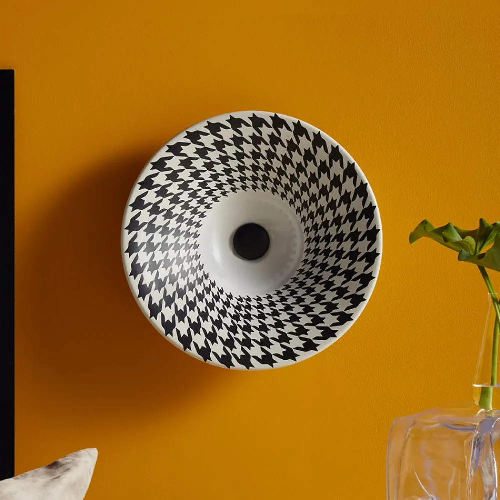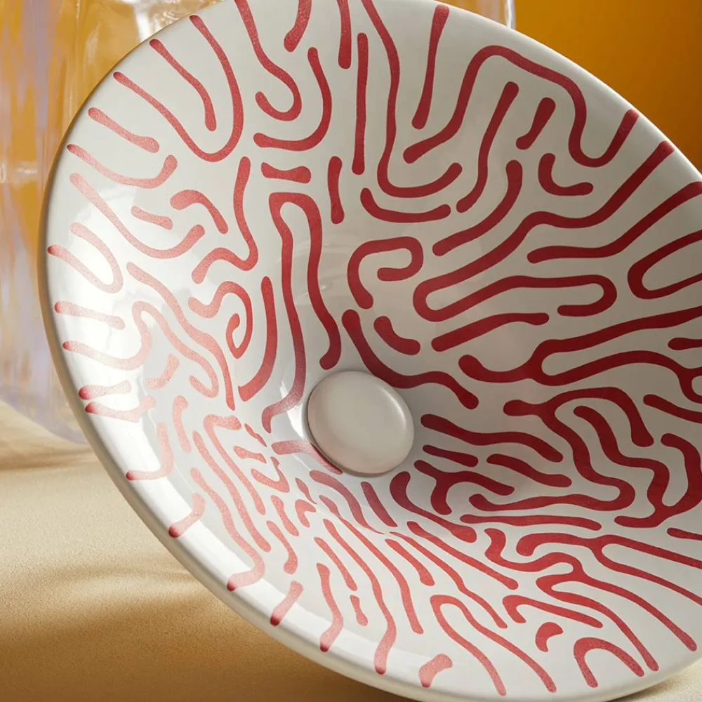 Dank der Möglichkeit, die Dekoration auszuwählen, ist es möglich, auf unterschiedliche Designanforderungen zu reagieren und unterschiedliche Effekte zu erzielen : geometrische Hintergründe, abstrakte Texturen, Designs mit orientalischen Anklängen. Dadurch wird dieses Produkt zu einem echten Möbelstück , das die Badezimmerumgebung vervollständigt und personalisiert und dabei die für Made in Italy typische Funktionalität und Qualität garantiert.