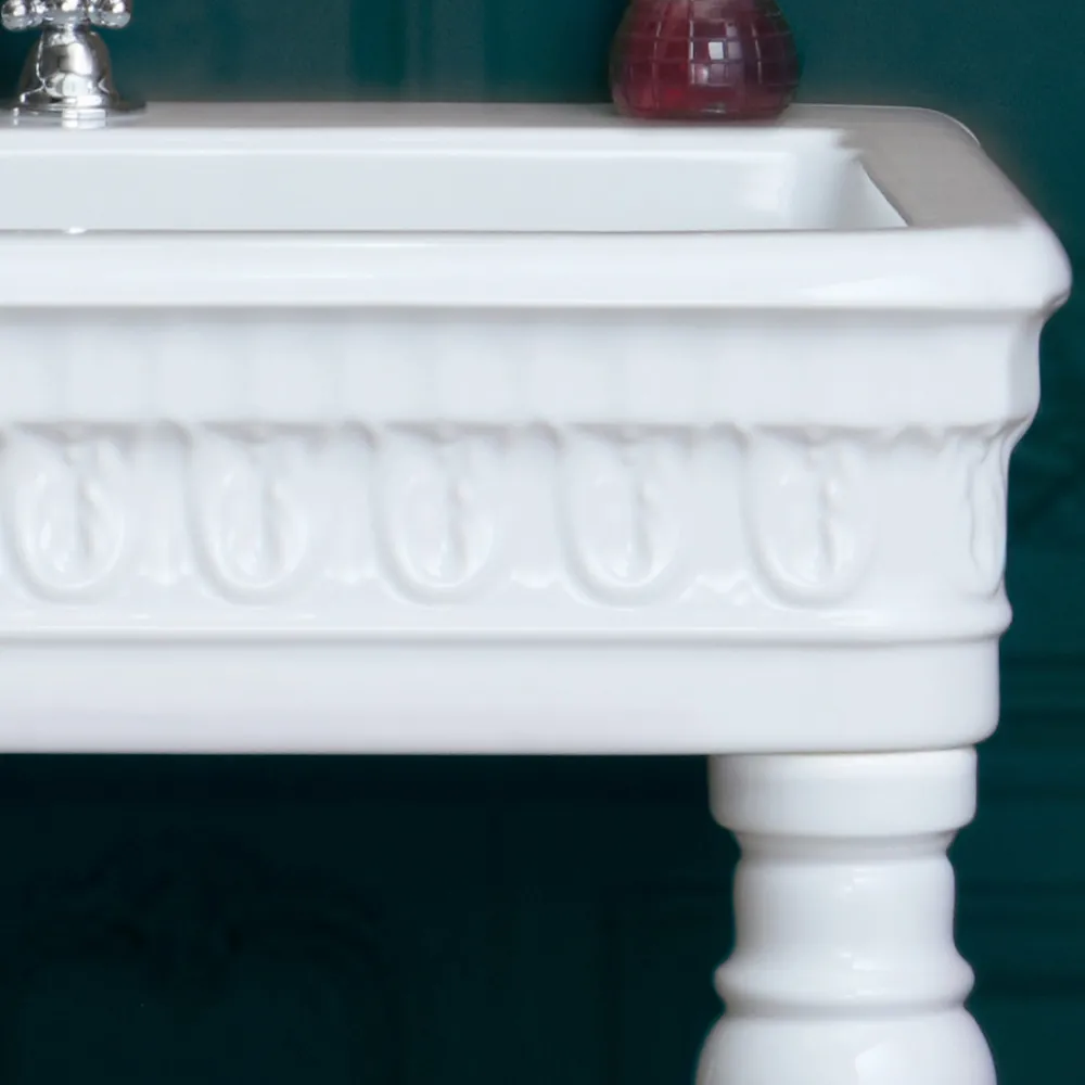 Klassisches Konsolenwaschbecken aus weißer Keramik, handgefertigt in Italien.