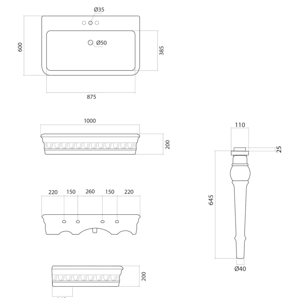 NB : Wasserhähne, Abfluss und Siphon nicht im Lieferumfang enthalten.