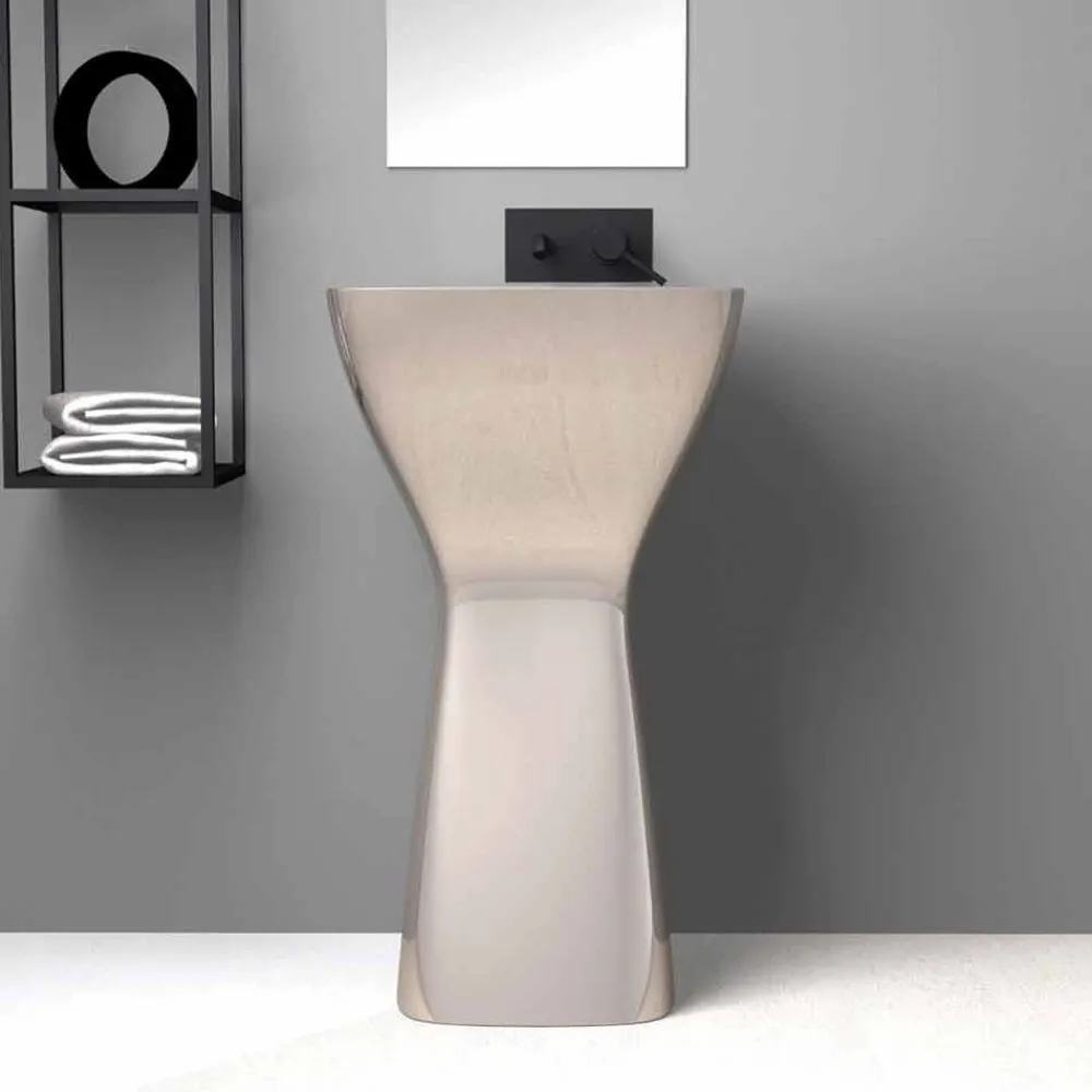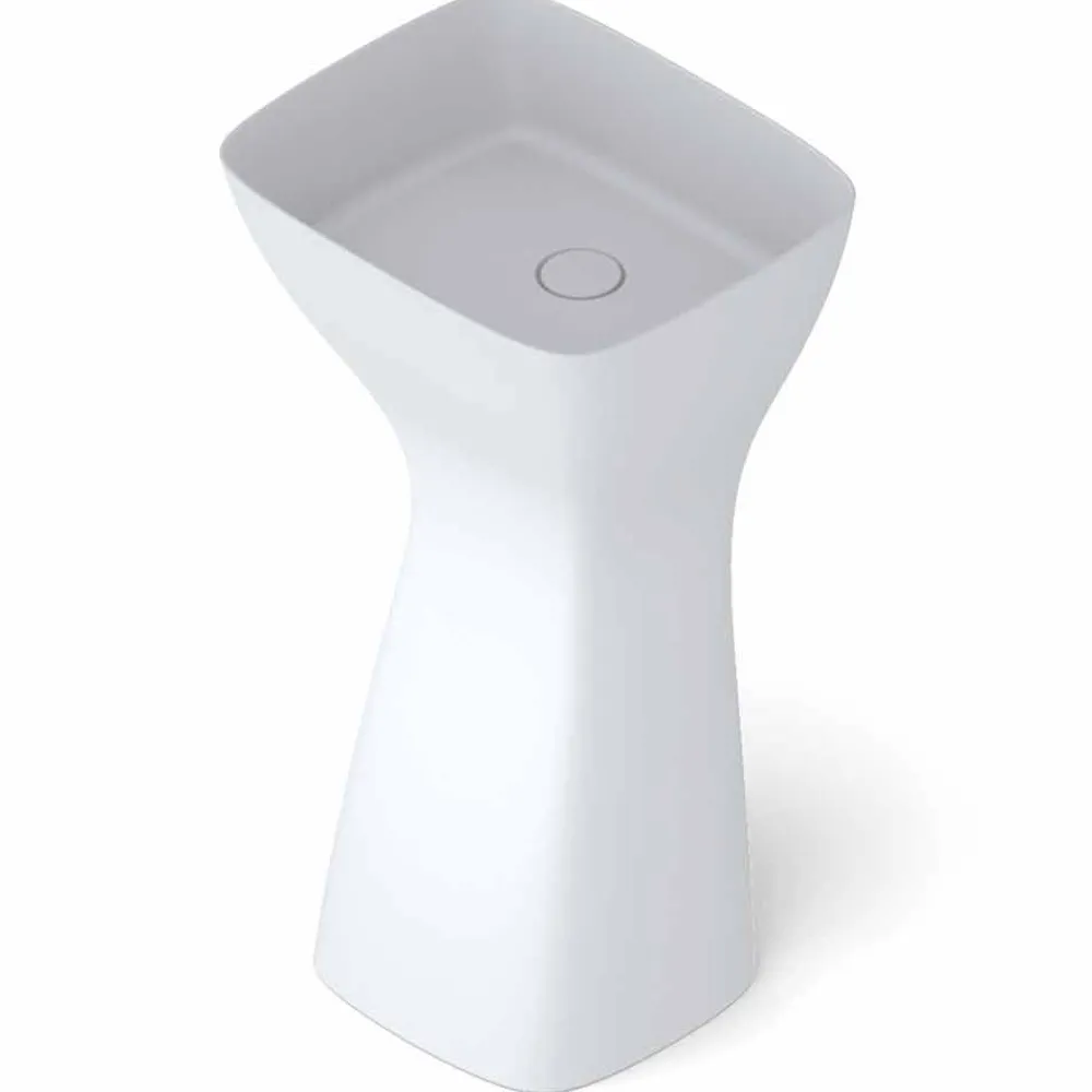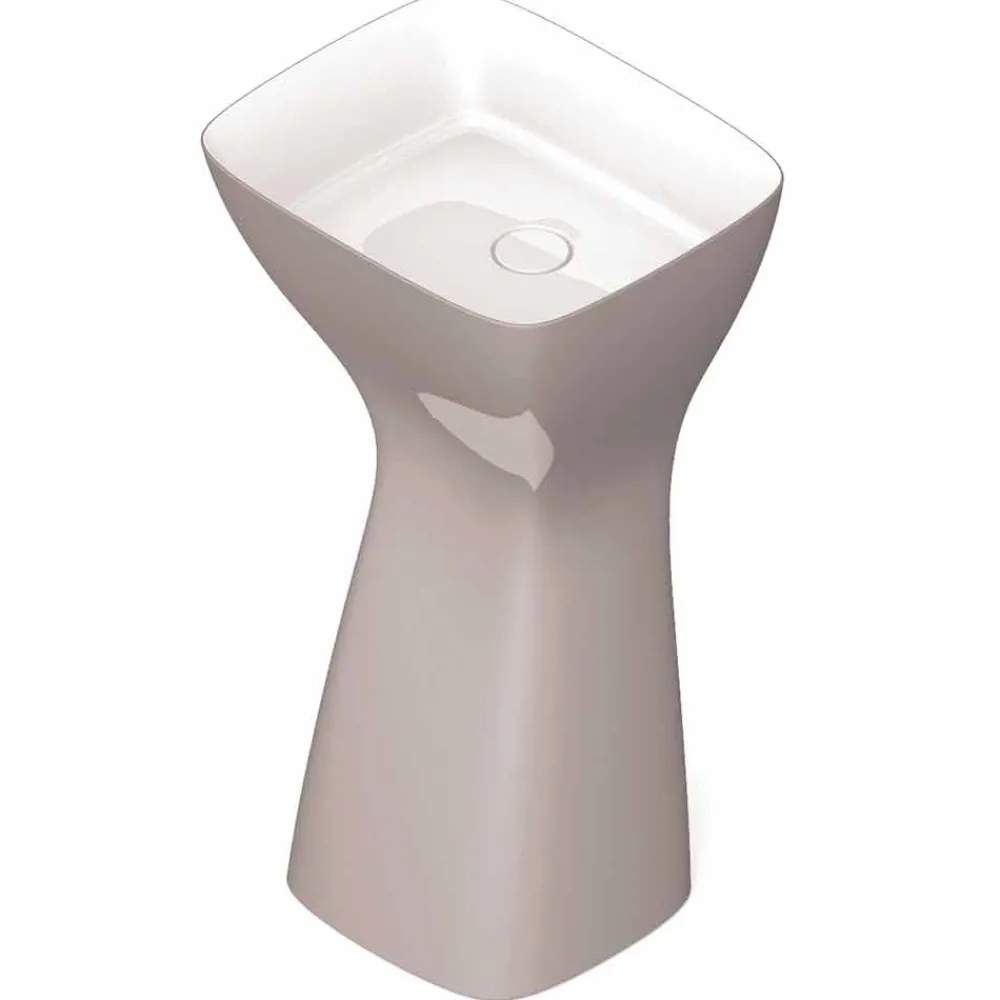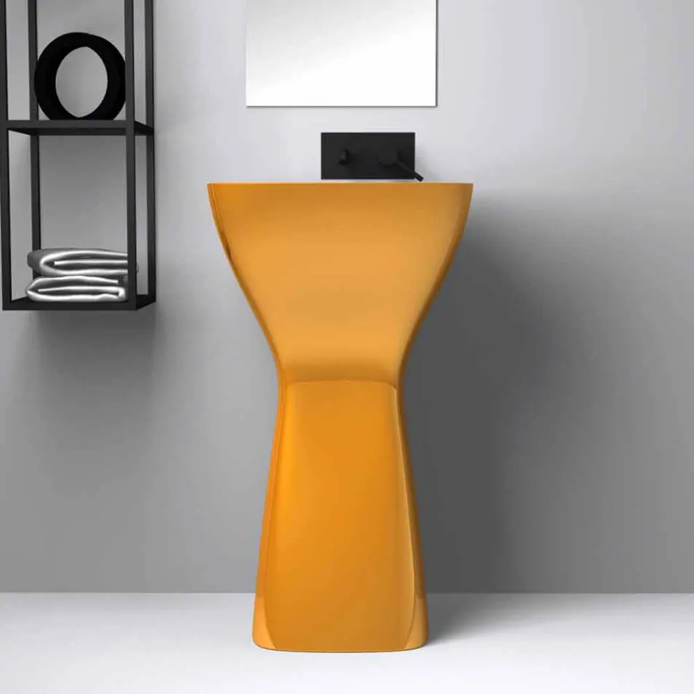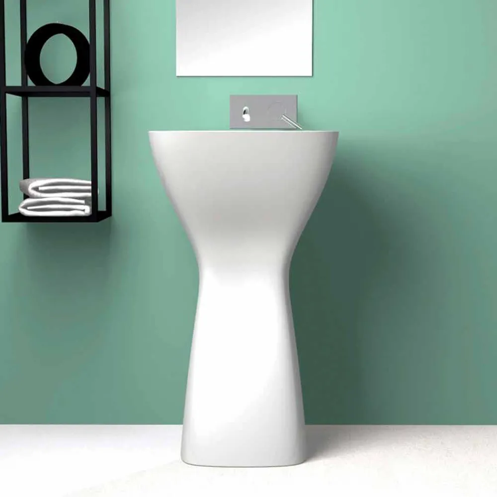 Firmino ist ein wunderschönes freistehendes Keramikspülbecken aus Italien mit extrem dünnen Kanten und strengen Formen, die perfekt dazu geeignet sind, Ihr Badezimmer mit Design und Funktionalität auszustatten.