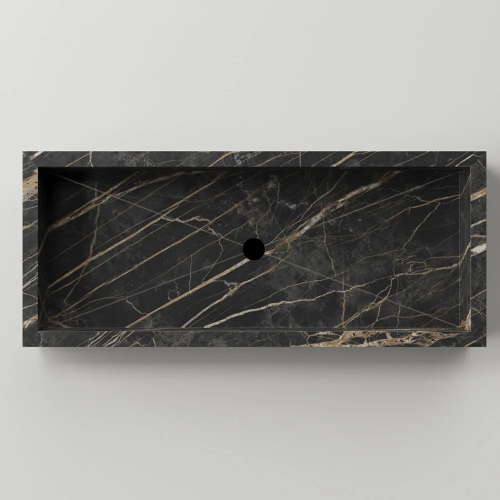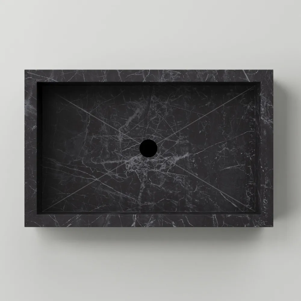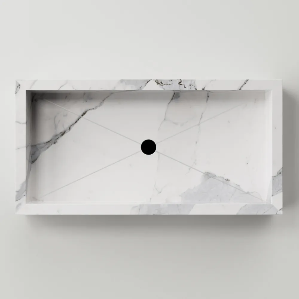 Dank der Möglichkeit, aus einer breiten Palette verschiedener Oberflächen zu wählen, ermöglicht Ihnen das Waschbecken, Ihrer Kreativität freien Lauf zu lassen, um einzigartige Atmosphären mit starker visueller Wirkung zu schaffen. Der Einsatz von Konstruktionstechnologie und ein unverwechselbarer Stil machen dieses Waschbecken in der Lage, mit einem modernen und raffinierten Stil den Mittelpunkt der Aufmerksamkeit im Inneren des Badezimmers zu erobern und ein hochfunktionelles Produkt anzubieten, das sich durch die Raffinesse und Eleganz des Marmoreffekts auszeichnet.