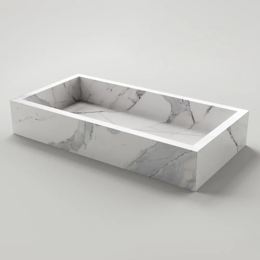 Rechteckiges Aufsatzwaschbecken aus Feinsteinzeug Made in Italy.