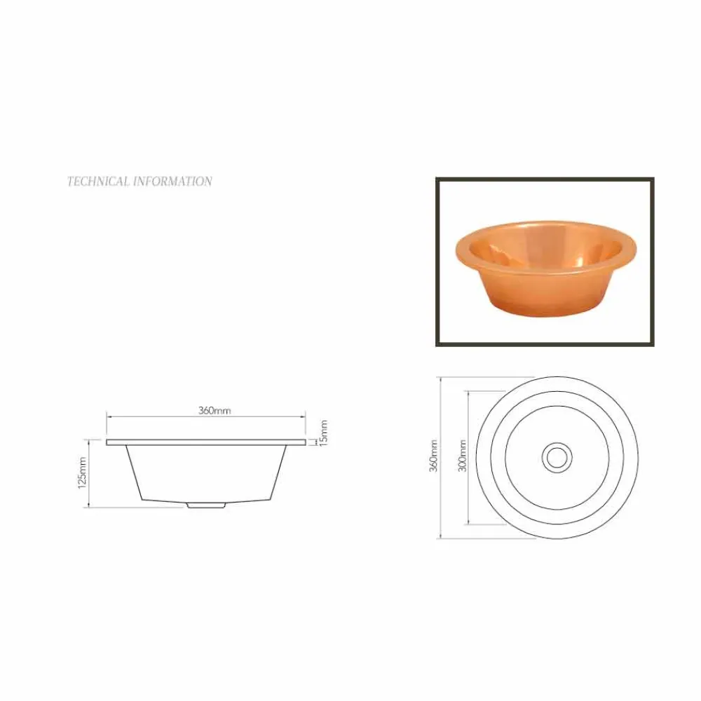 Rundes Waschtisch für Badezimmer mit vollständig kupferfarbener Struktur und Innen- und Außenverkleidung, ebenfalls komplett aus Kupfer, vollständig handgefertigt. Design-Waschbecken im Vintage-Stil, das Schönheit und Eleganz kombiniert und Ihrem Zuhause einen Hauch von Klasse verleiht!