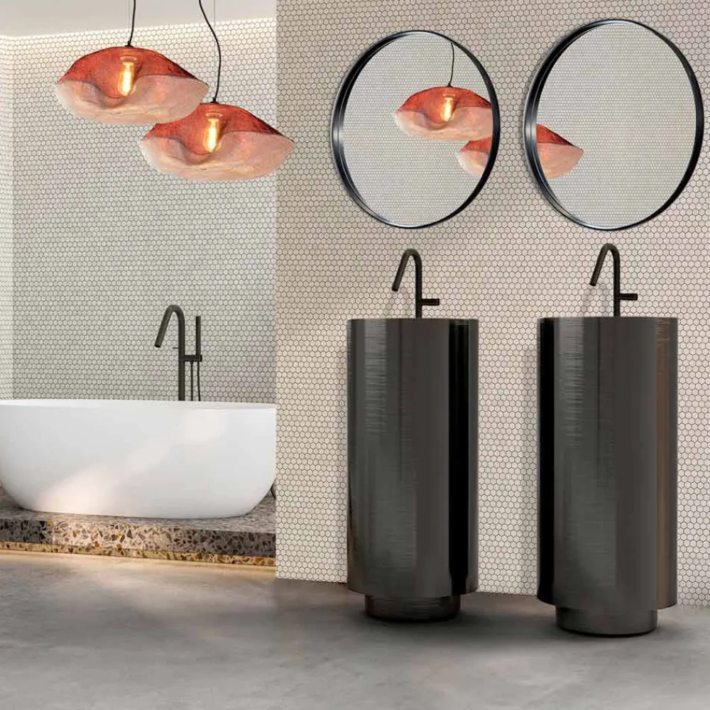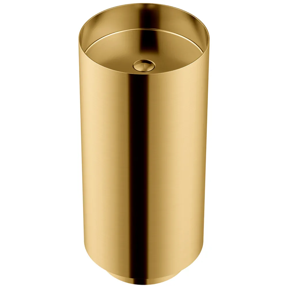 Lassen Sie sich von dem einzigartigen Design unseres freistehenden Waschbeckens faszinieren, ein echtes Stil-Statement für Ihr Badezimmer. Dieses aus einem einzigen Blatt nahtlosen SUS 304-Stahls geschmiedete Waschbecken verfügt über eine leistungsstarke PVD-Beschichtung , die für ein makelloses Finish und zeitlose Optik sorgt. Erhältlich in drei Ausführungen , um allen Designanforderungen gerecht zu werden, mit einer Möglichkeit für einen Wandablauf , der die Installation erleichtert. Seine wesentlichen Volumina und minimalen Dicken sind das Markenzeichen eines Designs, das das Konventionelle herausfordert. Jedes Detail, vom konischen Waschbeckenfuß bis zum mitgelieferten Klick-Klack-Ablaufgarnitur aus demselben Material, ist darauf ausgelegt, eine ästhetische Kohärenz zu wahren, die jede Umgebung aufwertet.