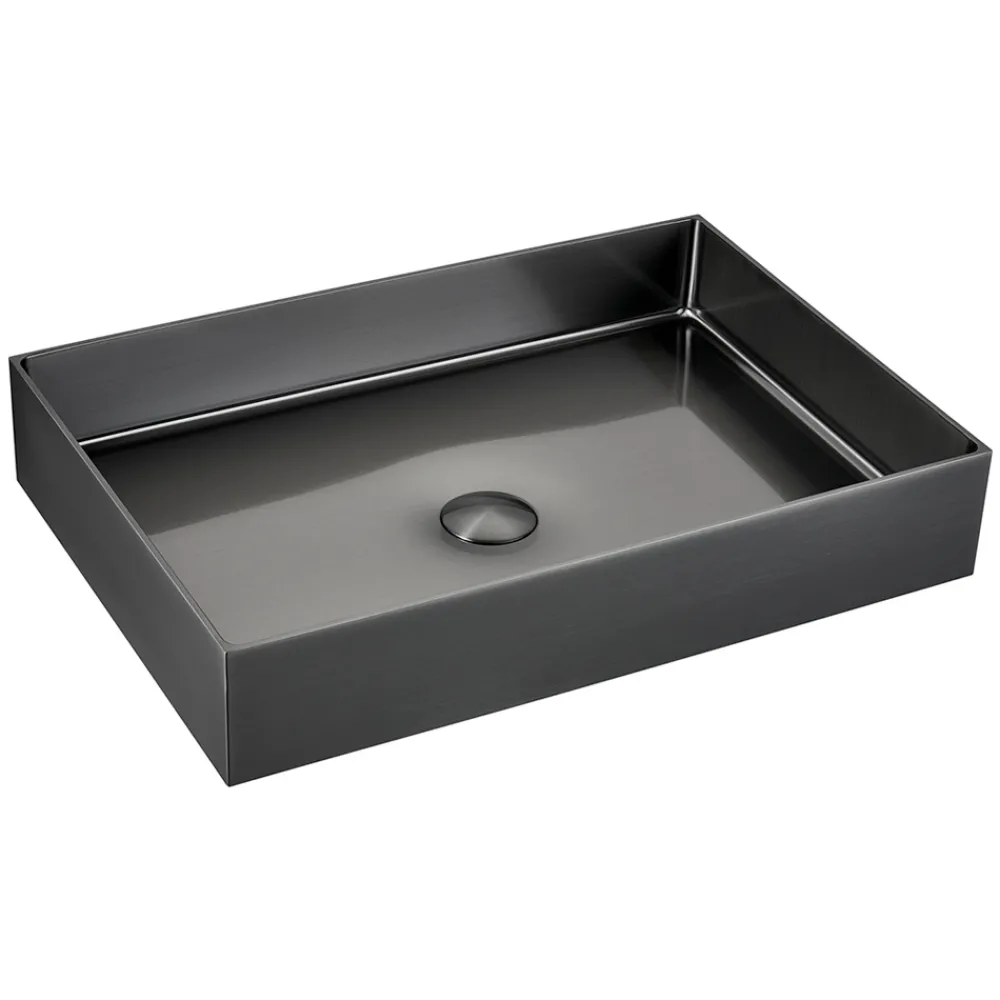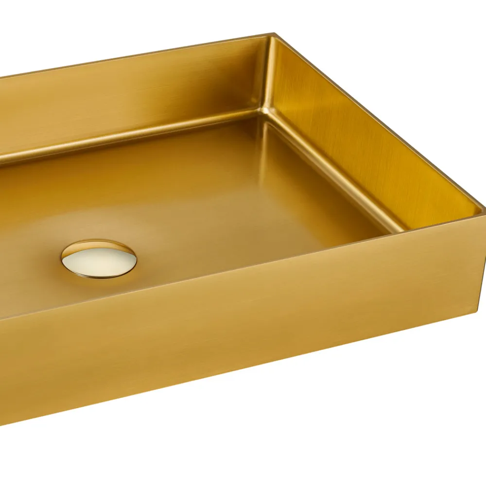 Das rechteckige Aufsatzwaschbecken aus 3 mm starkem Edelstahl SUS 304 ist ein Juwel an Design und Funktionalität. Es ist aus einem einzigen Metallblech gefertigt und bietet eine klare, moderne Ästhetik. Die Endbearbeitung der PVD+Nano-Beschichtung in Kombination mit sorgfältigem Bürsten verleiht dem Objekt ein attraktives und fast rätselhaftes Aussehen und verbessert den Glanz sowie die Widerstandsfähigkeit gegen Flecken und Kratzer. Das Design zeichnet sich durch ausgewogene Formen und ideale Proportionen aus in drei Ausführungen , die sich elegant an jede Umgebung anpassen. Darüber hinaus machen raffinierte Details wie die mitgelieferte passende Ablaufabdeckung und der völlige Verzicht auf sichtbare Schweißnähte dieses Waschbecken zu einem wahren Meisterwerk der Handwerkskunst und des Designs und machen es zu einem herausragenden Stück für Badezimmer mit luxuriösem und modernem Flair.
