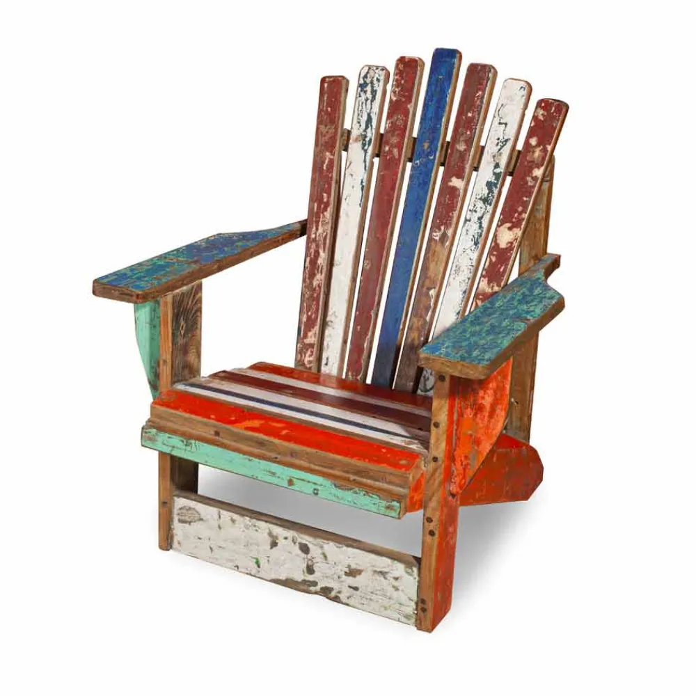 Sessel aus wiedergewonnenem massivem Teakholz, rustikales Design.