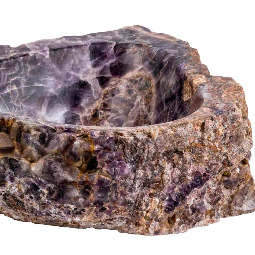 Vidor ist ein durchscheinendes Aufsatzwaschbecken aus Amethyst.